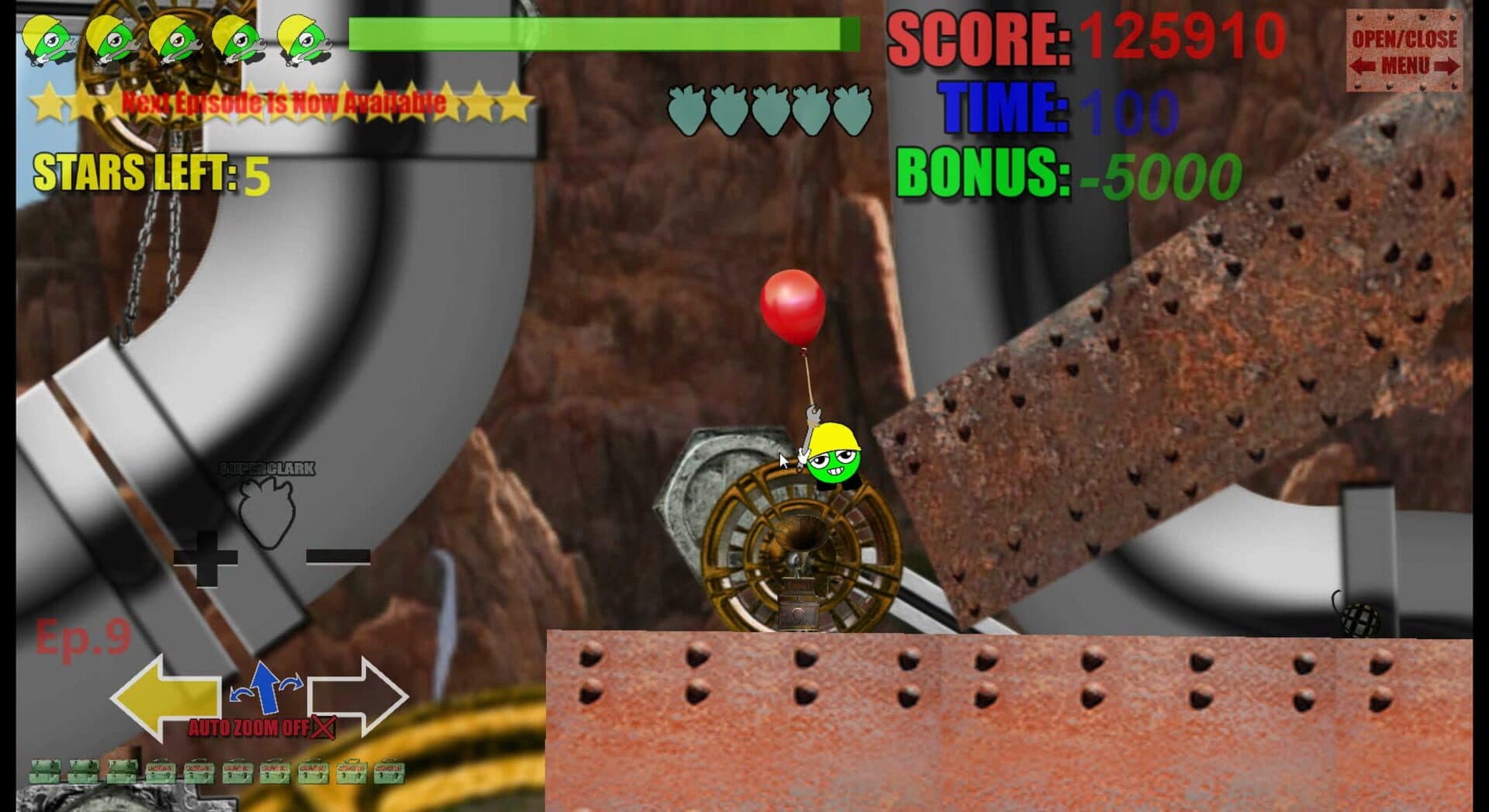 Clark is a construct guy. He is a safety inspector on those dystopic futuristic and surrealistic construct sites. He is having a lunch break. His lunchbox is missing though. He must find it. The hidden lunchbox much be reached before time goes to negative as this may have serious effects of thunder and lightning strikes! Thunderstom is also ignited by negative bonus score on each level. The hungry birds that eat those lovely strawberries and create minus points can achieve that. Our main hero should act fast and wise and intelligent. He should eat those strawberries before the birds to gain a huge succesful score point and to avoid the thunderstorm. Strawberries though are nothing compared to milk and sausages that the lunchbox can offer so Clark still has to find it. Strawberries give him superpower of flying though which makes life easier. There are also gravity machines, balloonmophones (to blow balloons to fly with), teleports, bombs etc etc to help Clark find and reach his beloved lunchbox. 10 episodes and 100 levels of exciting and challenging FUN! Find the lunchbox without falling to death! Hit those birds to get points! Fly! Bomb! Teleport! Unscrew those steel rusty beams to create a terrible destruction in those construction sites. HAVE FUN!