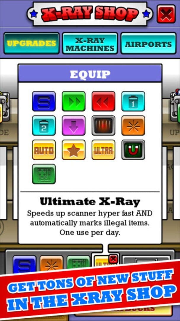 Try your skills as an Airport Baggage screener in Airport Scanner! Now featuring the ALL NEW R&D Lab where you can test your skills with dozens of new levels and gameplay modes! Airport Scanner is the hit game that went #1 in over 20 countries! Every day at the airport is busy and hidden among the impatient travelers are a bunch of bad guys trying to bring all kinds of bad stuff onto flights. It’s your job to scan the carry-on luggage, find the illegal items and get flights out on time. To make your job easier, you have an awesome X-RAY scanner that you can upgrade with all kinds of power-ups and a trio of burly TSA agents that will lay down the pain on any troublemakers. PROTECT THE SKIES - JOIN THE TSA Airport Scanner puts you in charge of operating a life like X-RAY scanner working for the TSA. Mark illegal items, expedite flight crew + first class passengers and look out for air marshals all while getting every flight out on time so passengers don’t riot! Each day at the airport gets more difficult, with new passengers, more illegal items and more flights to fill as you rise in rank from trainee to an elite operator. Earn XRAY bucks to purchase scanner upgrades to help along the way. FEATURES * All New R&D Lab with 50+ new levels! * Seven Fun Airports – Honolulu, Las Vegas, Chicago, Aspen, London, North Pole and the Moon. * Hundreds of levels mean hours of enjoyment. * Real TSA Prohibited and Allowed Items. * Tons of Hidden Rare Items to Find and Redeem for Xray Bucks! * XRAY 2000 – Top of the line luggage xray. Fully upgradeable! * Line Management - fast track first class passengers, hold next flight passengers and get flight crew on their flights! with just one tap! * Bonus Game – Punish passengers & earn Xray Bucks * Item Logbook - Track your progress in the logbook. * XRAY Shop for Scanner Upgrades * 75+ Addictive Achievements - Earn them ALL! ADDITIONAL FEATURES * Beautiful iPhone Retina graphics. * Universal support including iPhone 6/6+. * Game center leaderboard and shareable scores. * Get social by challenging your friends to compete on Facebook and Twitter. Haven’t you always wondered what it would be like to operate the X-RAY Scanner at the airport? Here’s your chance!