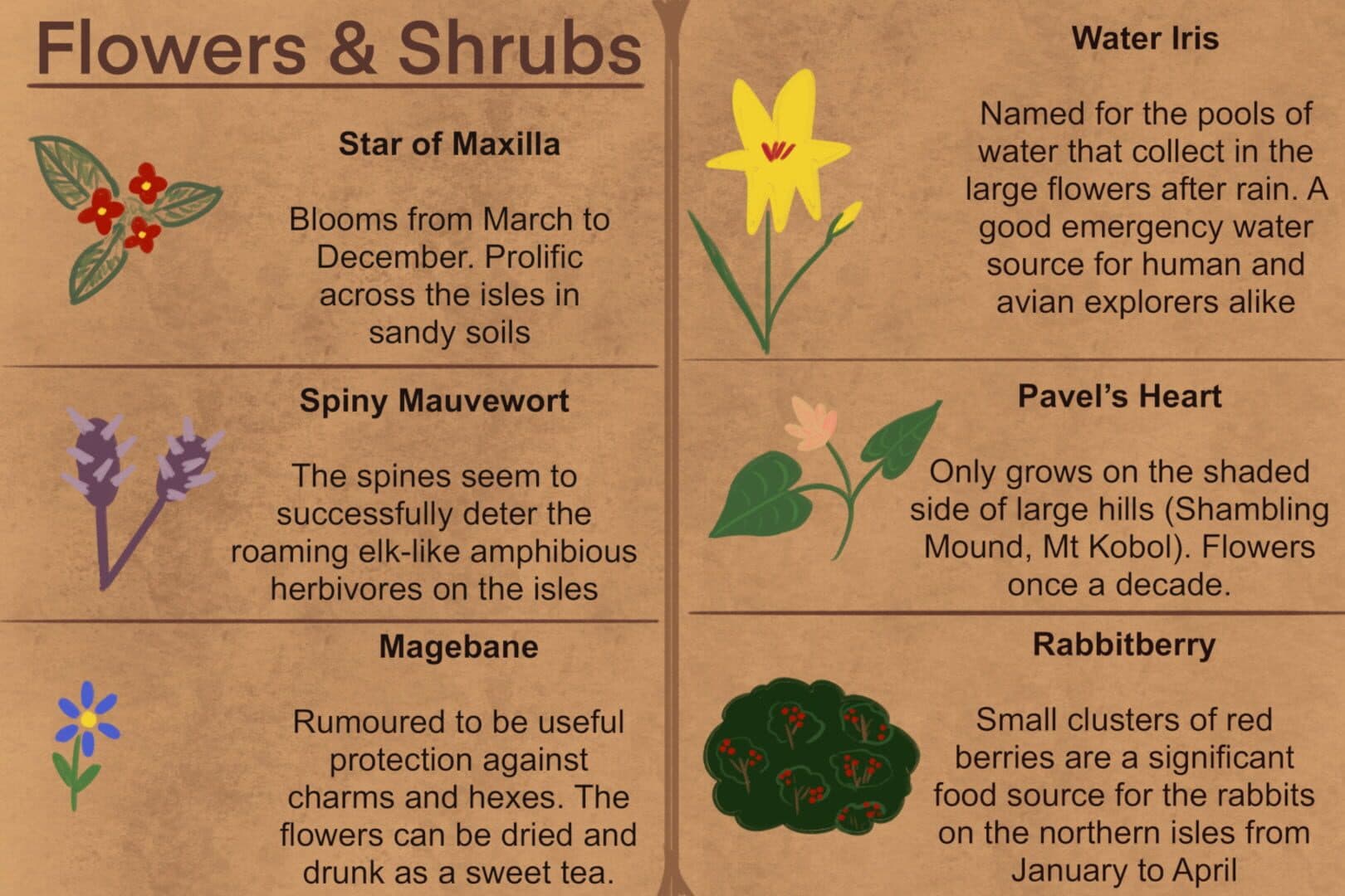 Your sailing ship has been drifting with the tide for weeks - there is no wind. Finally you dropped anchor near a chain of islands that you recognise - the Biuso Archipelago. The only information you have about the area is an unfinished book from one of your former shipmates. You have been chosen to go ashore, figure out which island you’re on, and scope out possible water and food supplies.