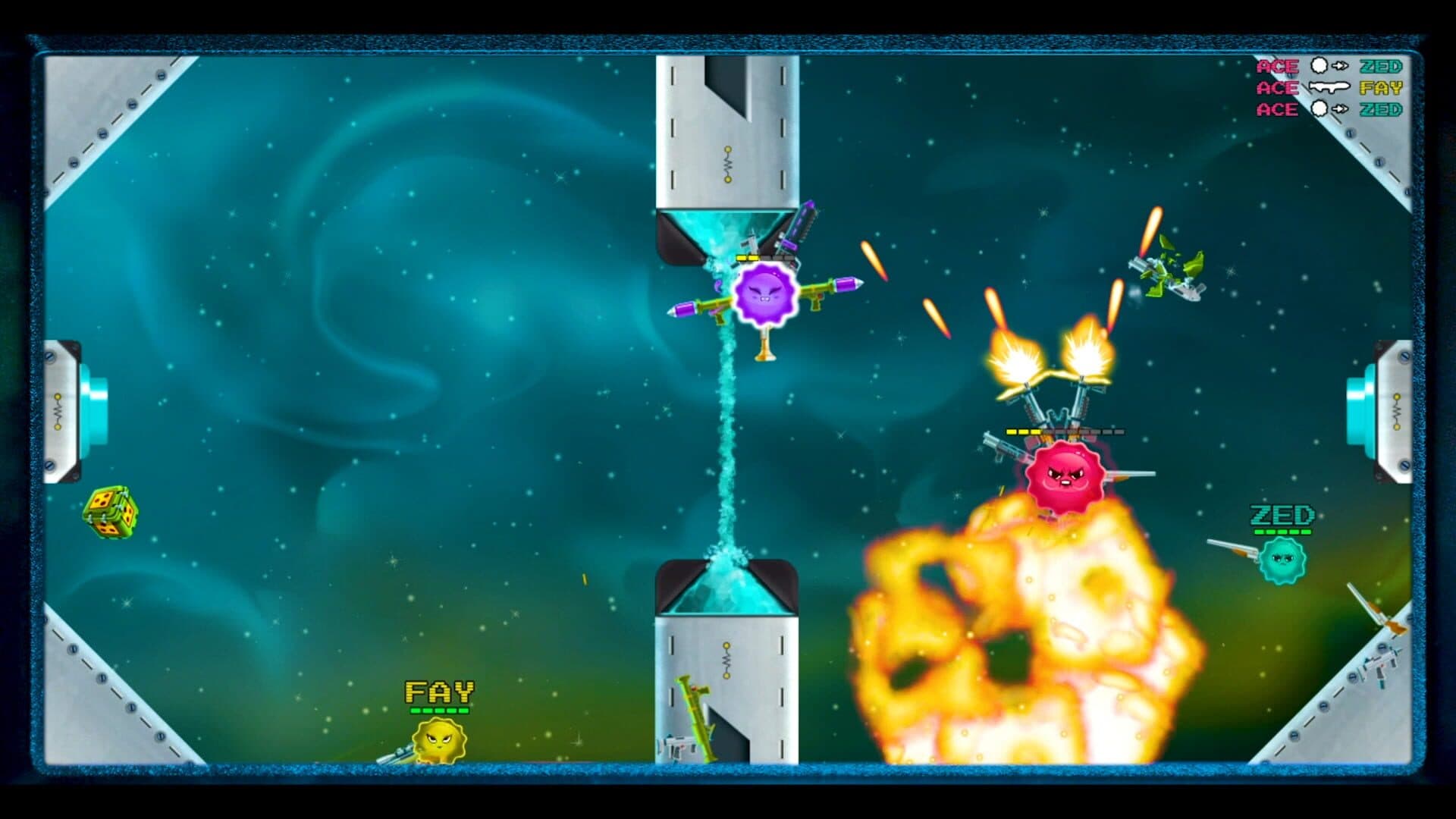 Armed and Gelatinous: Arcade Edition is a fast-paced competitive multiplayer space-shooter that pits friends against one another in epic battles of blob warfare! Load up on firepower and blast your opponents by sticking weapons to your gelatinous body. But beware that your blob grows larger with each weapon collected making you an easy target for fully-charged Dash Attacks! Two 4-Player team-based sports modes add some serious replay value to the mix! Trade off playing goalie and striker in Blob Soccer or really put your dash-tackling skills to the test in Blob Blitz! Additionally parties of 4 in Battle Mode can select 2v2 Team Tussle, which turns off friendly fire and combines player scores!