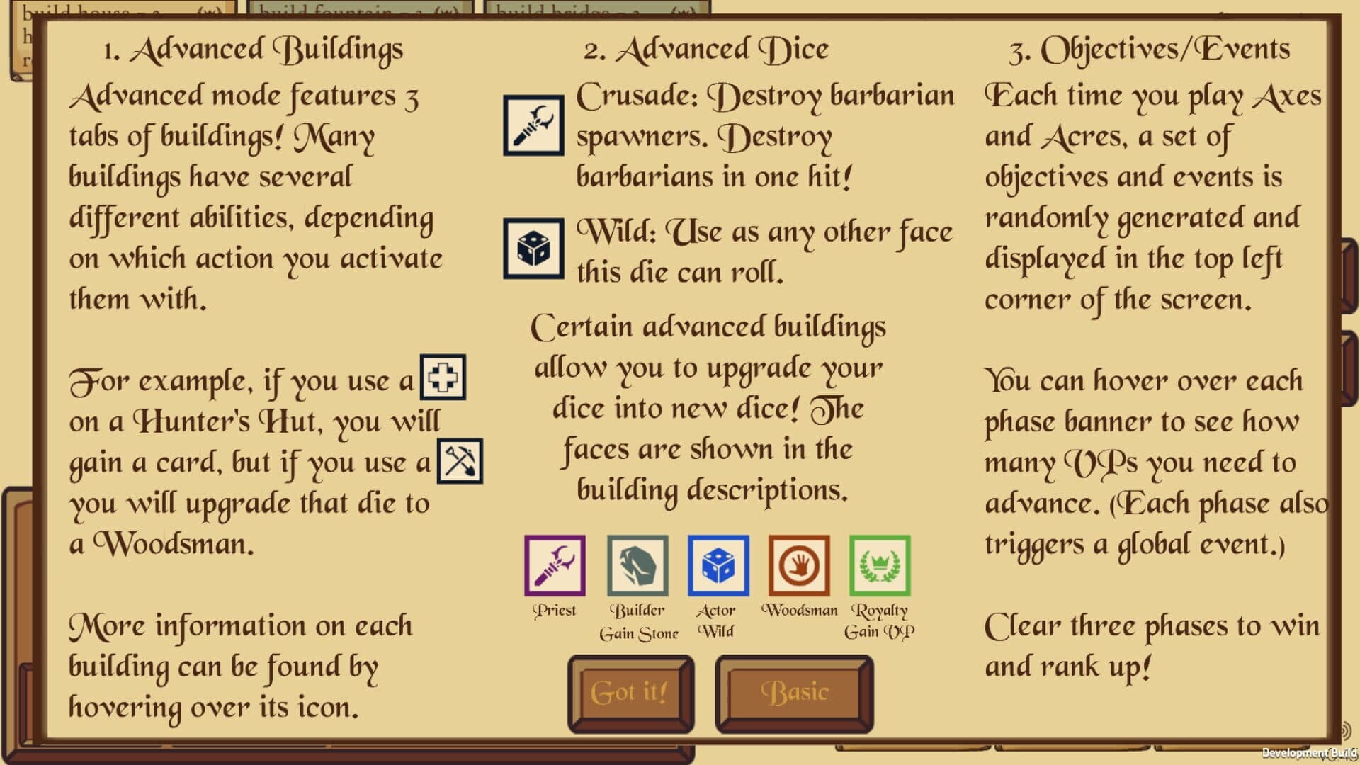 Axes and Acres is a deep and engaging single-player strategy game designed to create exciting decisions every turn. The rules are easy to learn, but every turn can be played out in many different ways in order to farm, build and survive.