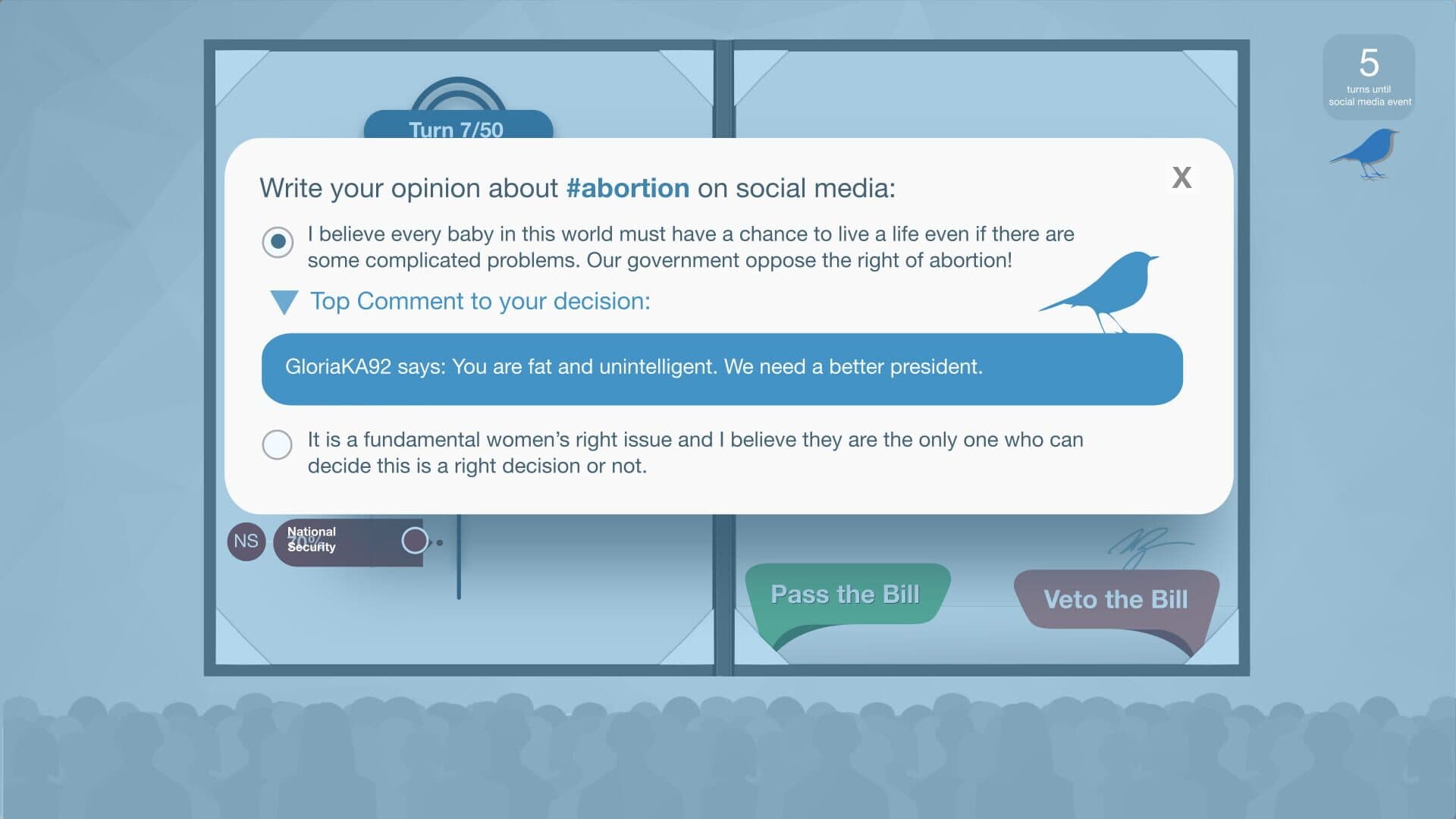 Balanced Politics Simulation is a political simulation game inspired by a quotation from Winston Churchill: ''Democracy is the worst form of government, except for all the others.'' This time, your choices will definitely matter.