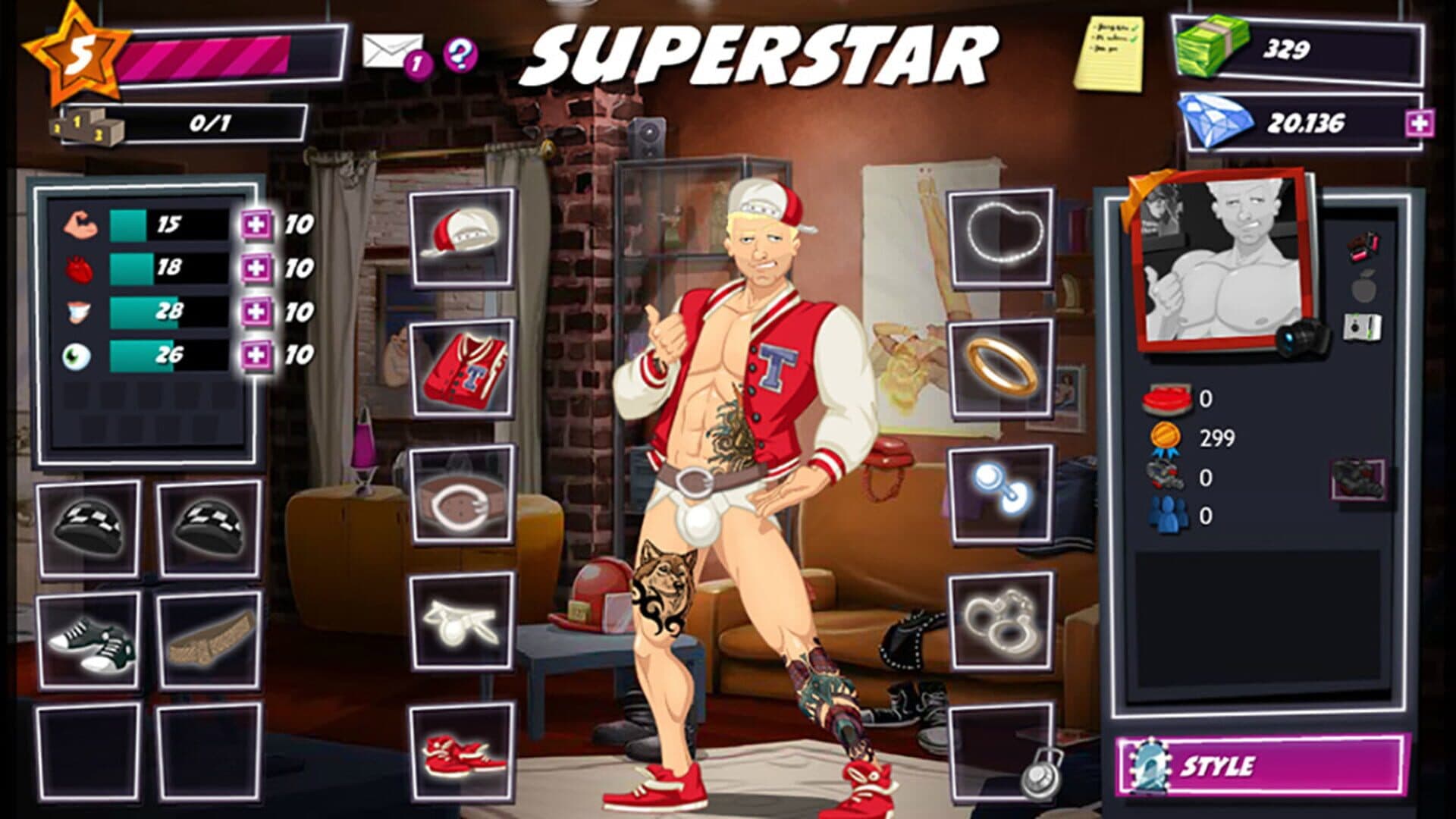 Conquer the blue movie Olympus in this fun & kinky RPG. Collect ludicrous items, level up your stats and compete with other stars!