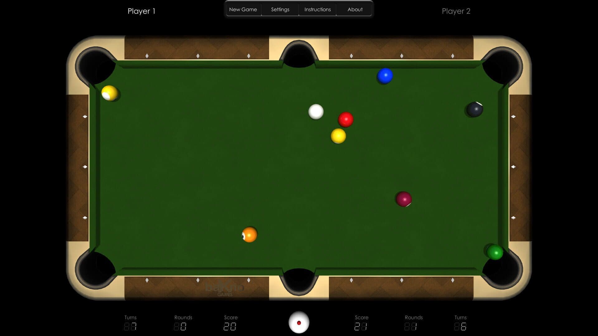 Realistic and very easy to play billiards simulation with five different games: 9-Ball, 8-Ball, Straight, 3-Balls and Snooker