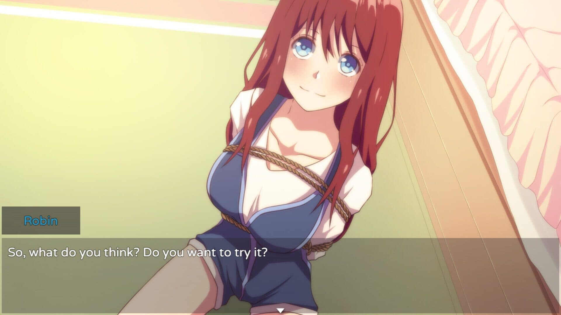 Robin is a student in college who has always had a secret interest in being tied up. One day she decides to challenge her roommate and childhood friend, Alicia, to tie her up after they watch a movie featuring a poorly tied damsel in distress.
