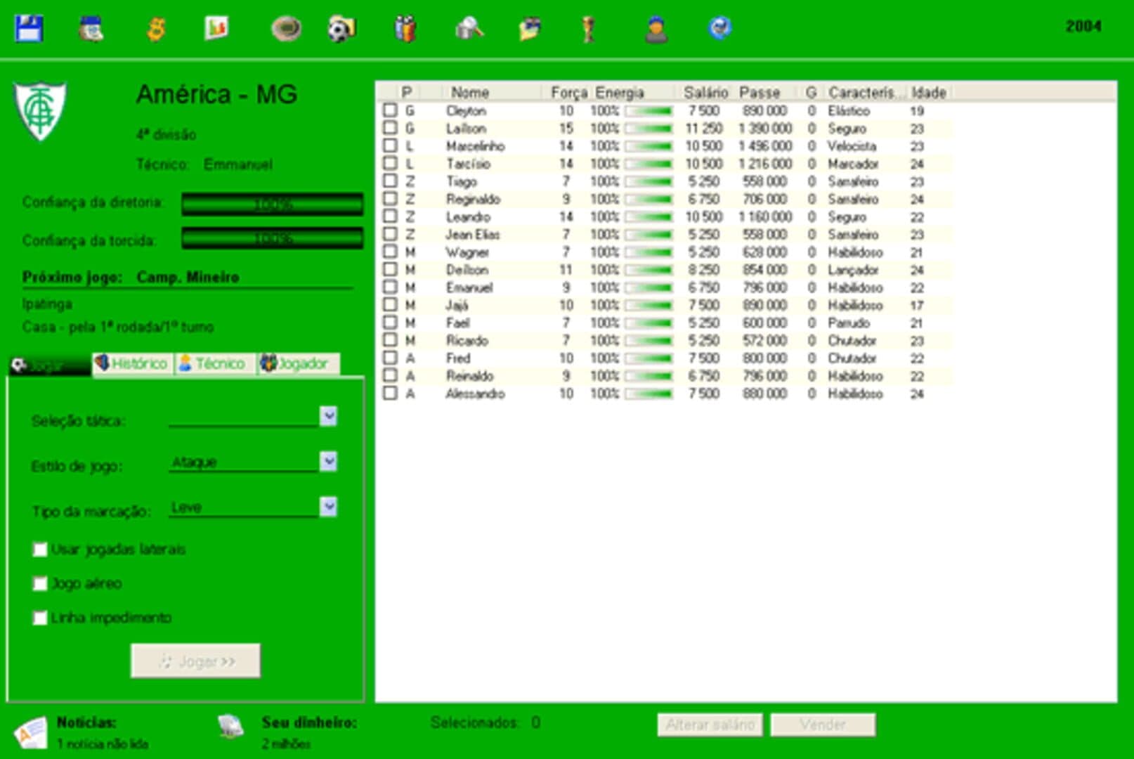 BrasFoot 2004 is the second iteration of the soccer management simulator focused on Brazilian teams where you can buy and view players from other teams at any time during the game, manually select players for each match, change the ticket prices of the game at any time, and much more.