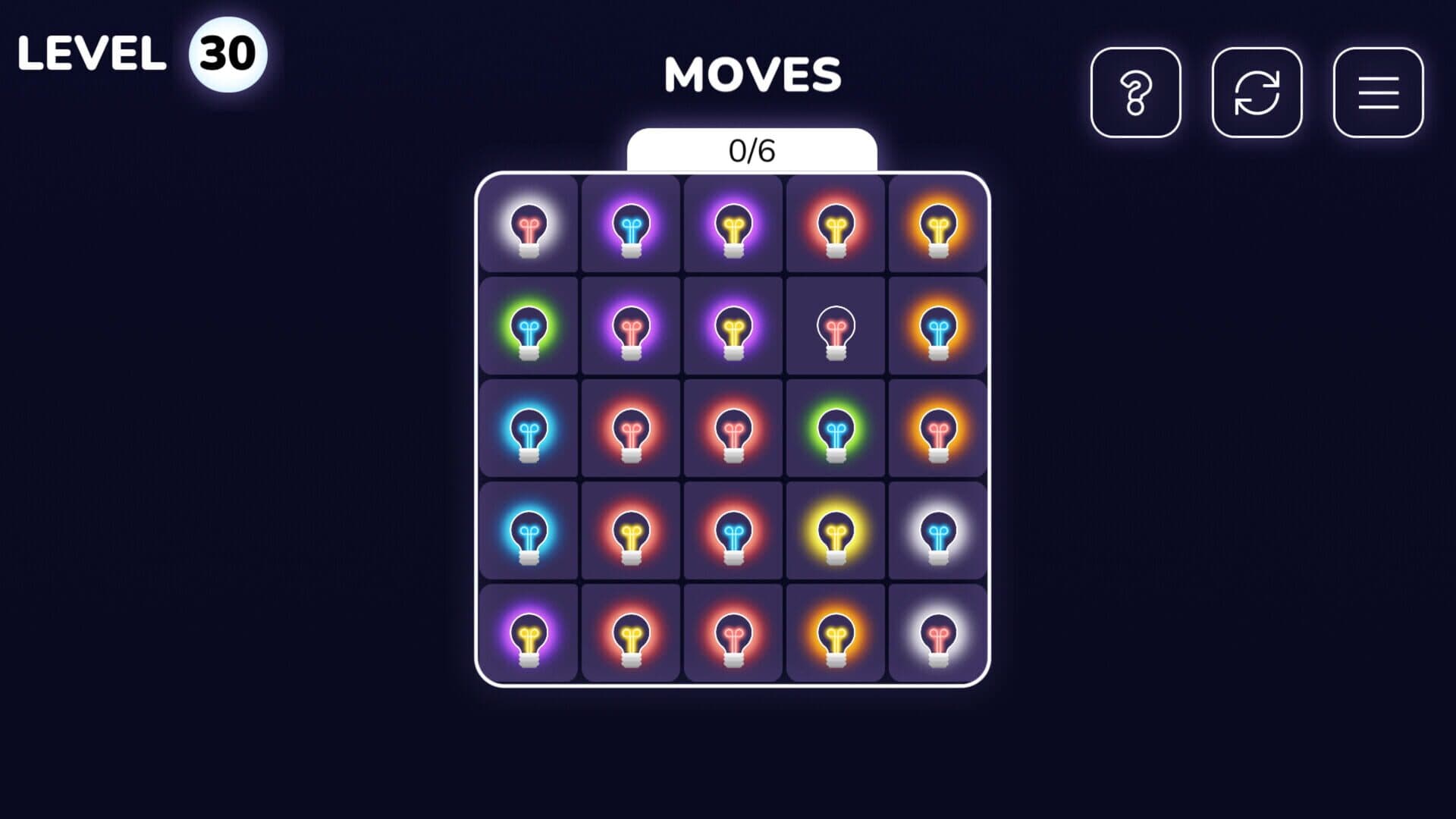 Combine color mixing and logic for some puzzle-solving fun in Bulbs 2.0, featuring over 100 stimulating levels to solve! Red plus blue makes purple, blue plus yellow makes green, and white contains every color. In Bulbs 2.0, you’ll combine the satisfying art of color mixing with logic for a truly stimulating puzzle game experience! Your board is filled with colored bulbs that will reverse their specific share of light on their own cell, along with the surrounding eight. If you “reverse” a red bulb, a neighboring blue one will change to purple. Any nearby purple ones? Those will swap back to blue! Your goal is straightforward, but challenging: Swap the colors until the entire board is white. With a limited number of moves and more than 100 levels of varying size, can you illuminate your way through the game?