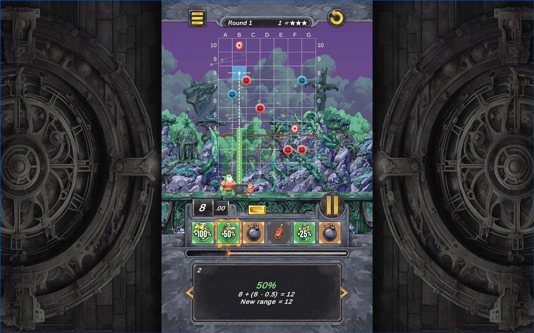 Join the pyromaniac gnome Cal and the troll Bomba on an explosive math adventure, in this award winning game. They travel through different worlds with their cannon. You must use percentage calculations to change the range of the cannon.
