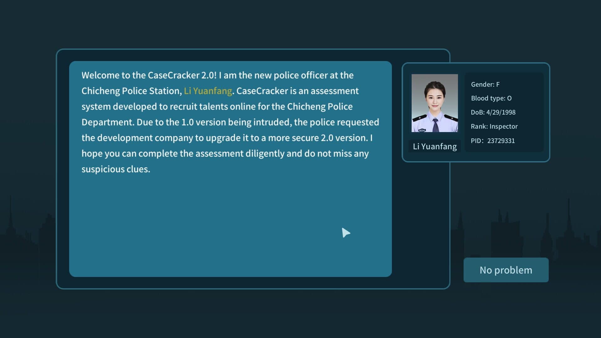 Jia huasheng ,the policeman of Chicheng police station, got disappeared without any trace after leaving a letter which illustrates the police station to start the CaseCracker system version 2.0.