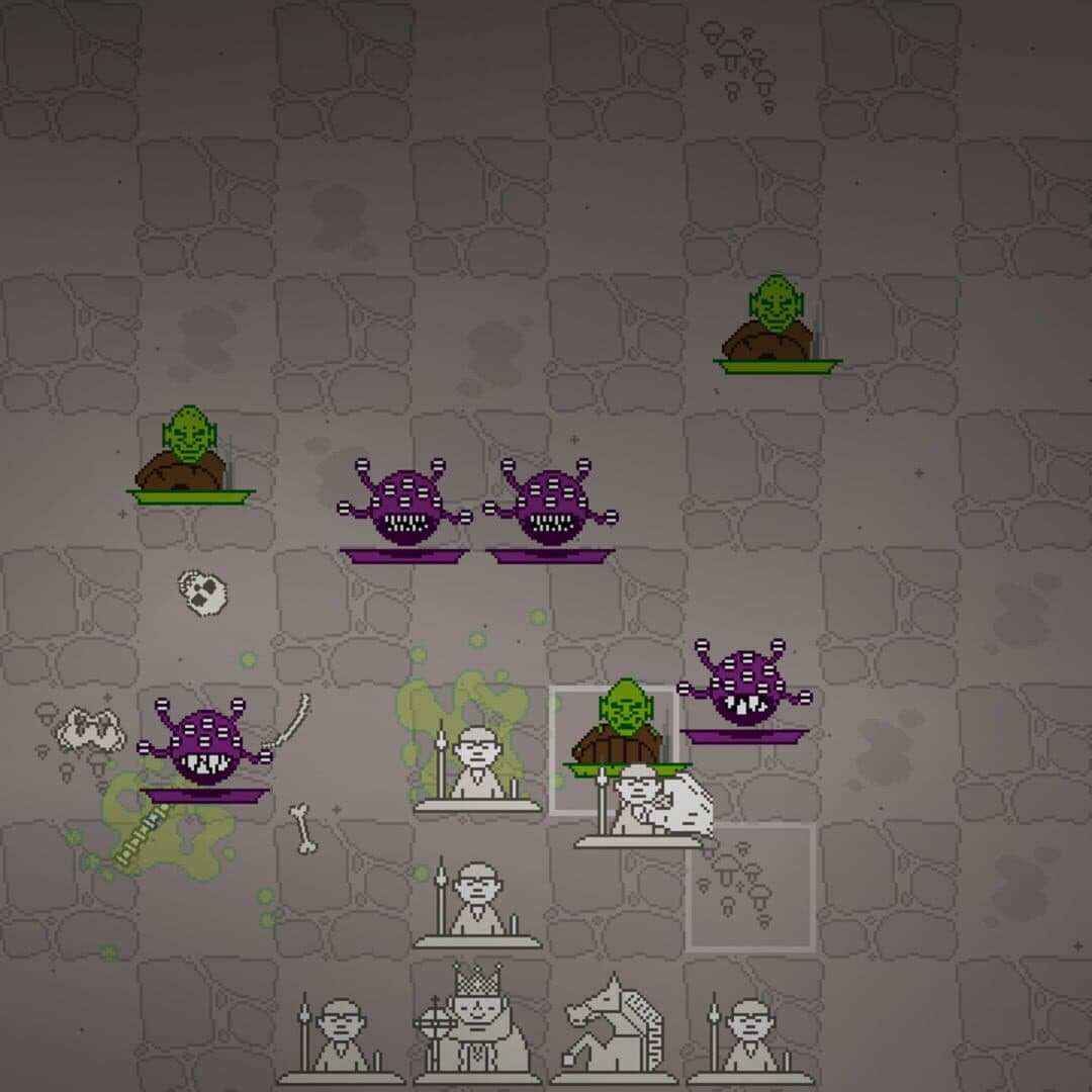 The city of Chessfield is being menaced by bloodthirsty monsters crawling out of the ancient catacombs. Together King, Queen, bishops, knights, rooks, and pawns embark to end the evil menace deep down below. The lawful chess pieces follow the chess rules, HOWEVER THE CHAOTIC MONSTERS FIGHT WITHOUT HONOR.
