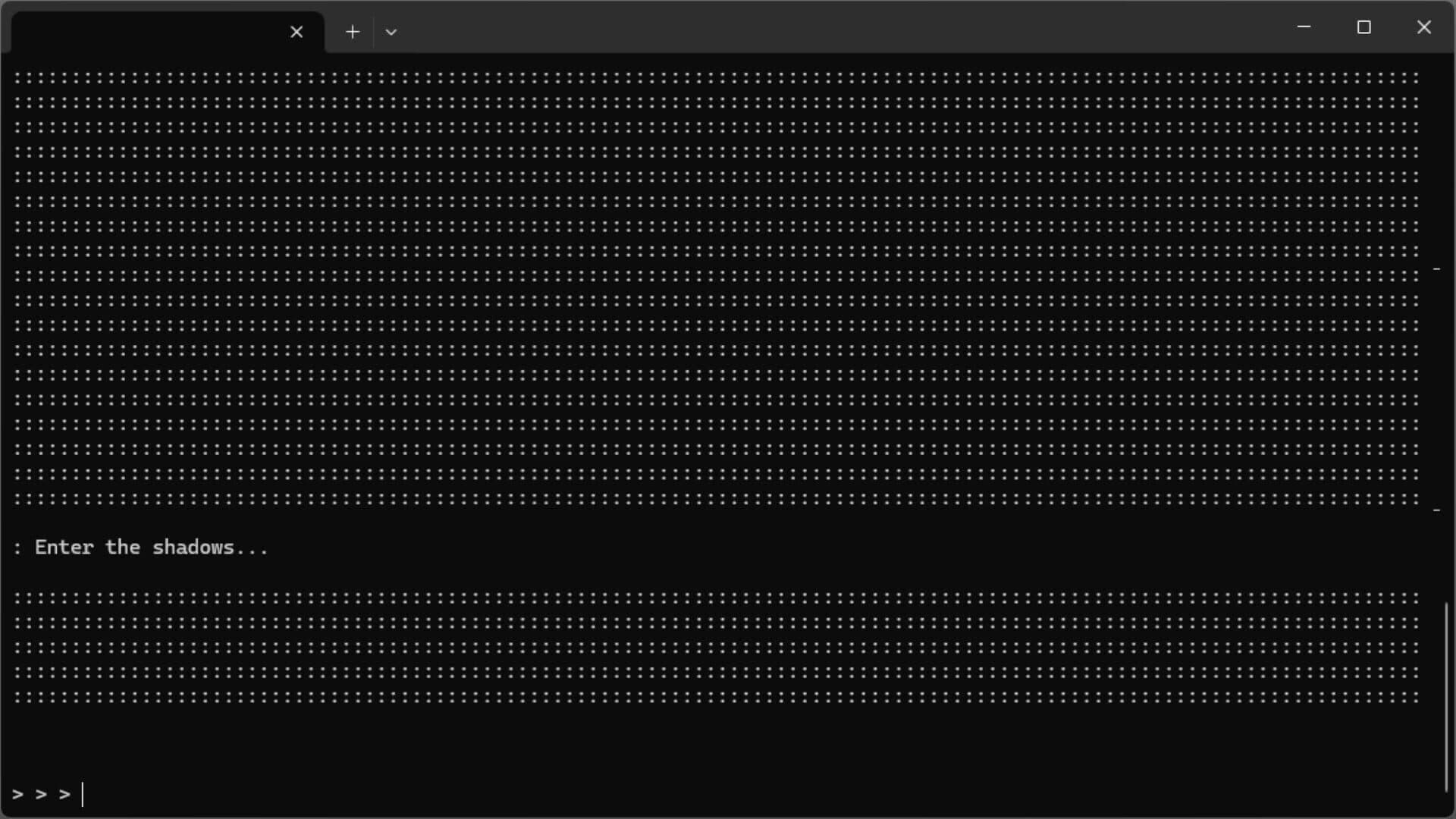 "Dark. Silent. Waiting." This is a text-based, turn-based strategy mini-game that runs on the command line. You play as a hunter exploring a mysterious cave in pursuit of the terrifying, man-eating creature known as the "Gurg."