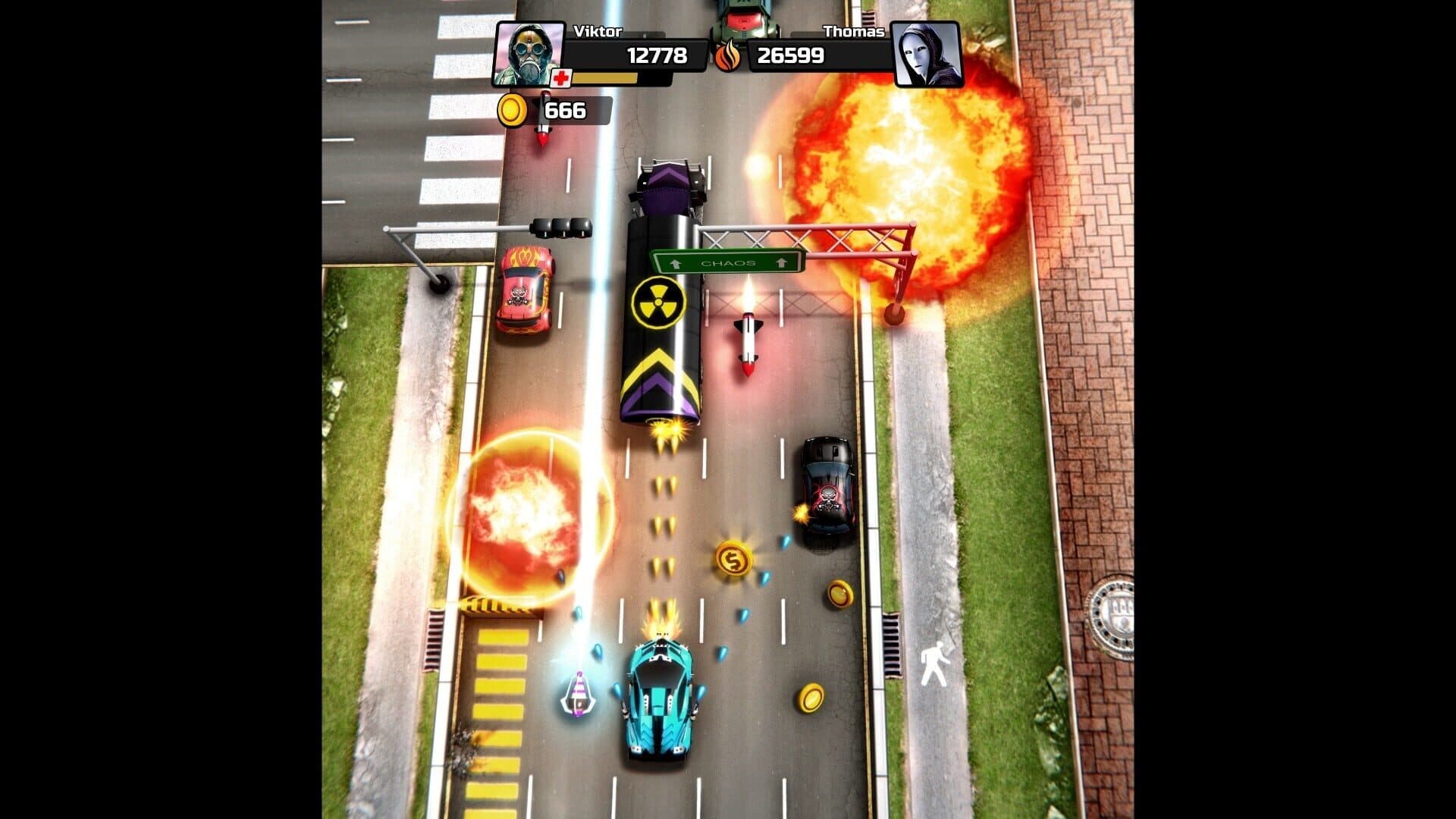 Chaos Road is an action-packed 3D shmup race shooter where you can drive different cars and rid the city of crime with an arsenal of weapons. Take the fast lane on traffic, attack and smash cars rivals on the road to revenge the city!