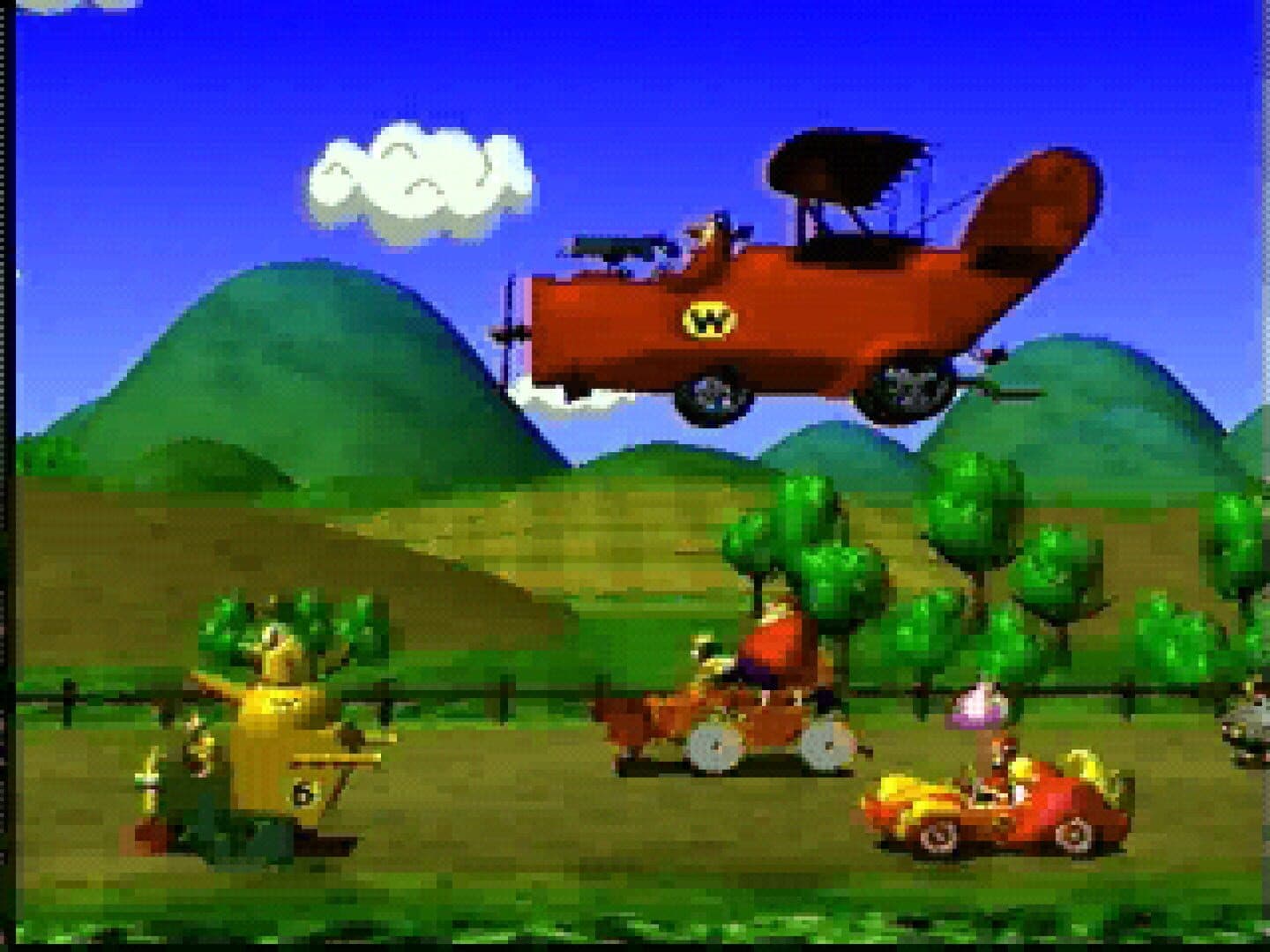 Based on the classic Wacky Races cartoon, this game puts players in the role not of a racer but of a gambler. Players choose different races and gamble on the outcome. Players can pick two different drivers they expect to come out on top. The racing itself is presented via prerendered CG cutscenes with some branching, so players' guesses aren't purely a matter of memorizing the cutscenes. With the money players earn, they can take part in the "trip" mode where they travel through the world of Wacky Races collecting items.
