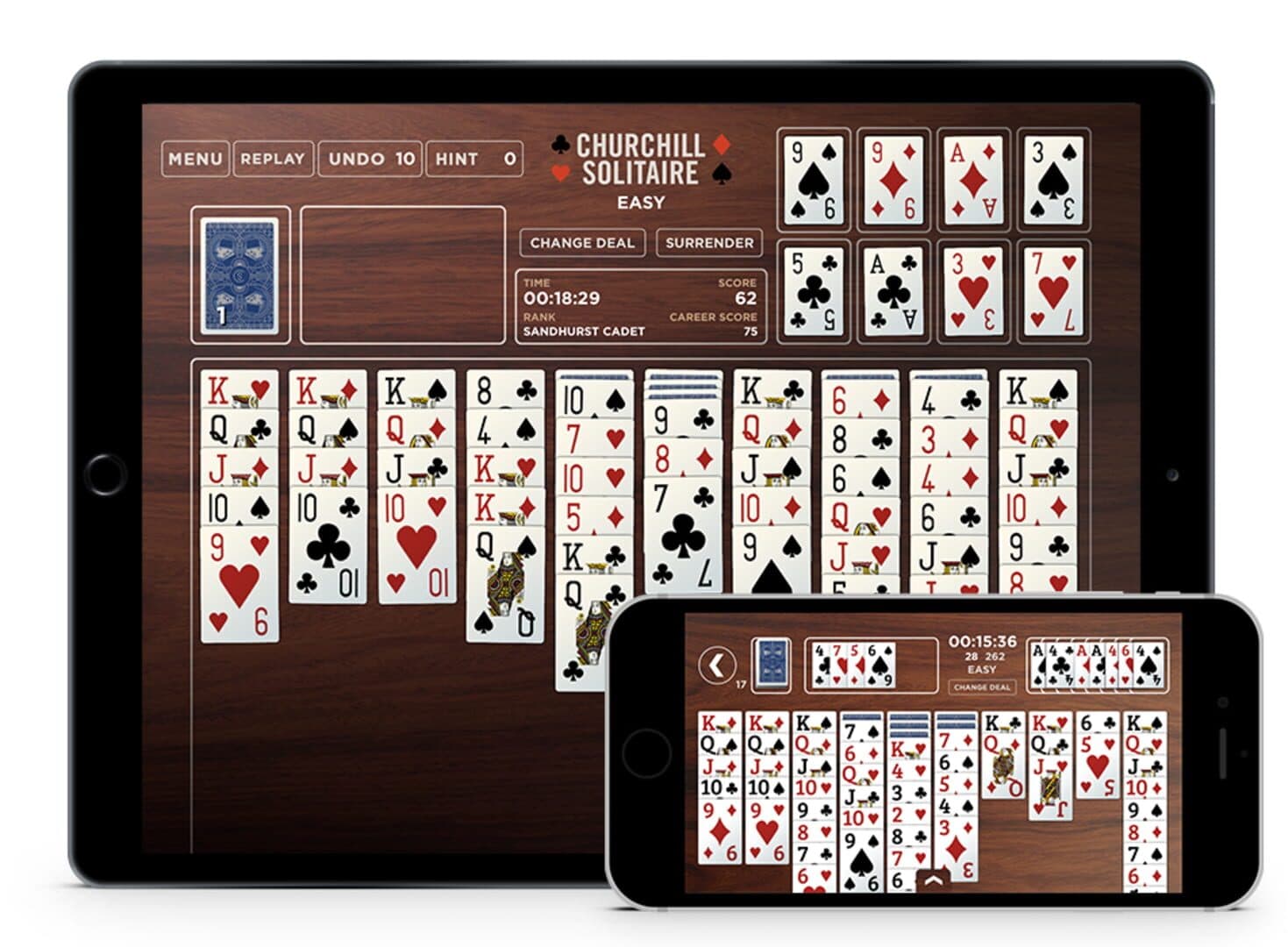 A variation on the classic card game Solitaire which was loved by Winston Churchill. Gameplay differs from standard Solitaire in the following ways: - Uses two decks of cards concurrently - Newly drawn cards are laid on top of existing columns rather than their own pile - Features "The Devil's Six", which are six cards in a row up top which must be sent directly to the scoring area and may never enter the field of play. This game was commissioned by Donald Rumsfeld and features video clips and audio recordings of Winston Churchill throughout a war-themed campaign mode.