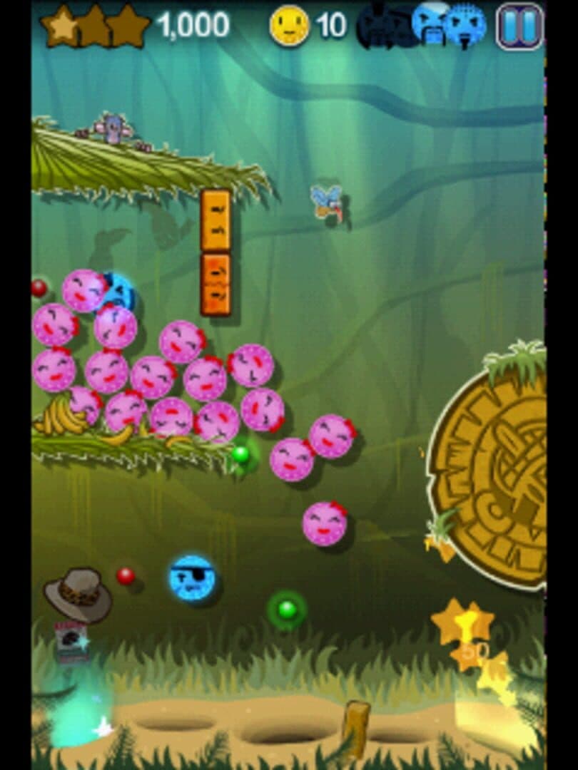 Coin Drop is a game that shares some similarities to pachinko or Peggle. The player is presented with a vertical playfield that consists of pins and other kinds of obstacles. The player drops coins from the top of the screen by tapping the screen. These will then bounce around until they reach one of five buckets at the bottom. Each level has a number of bad pennies and to move on to the next, the player has to hit all of them. The game is played with the touchscreen and the player simply taps where he wants the coins to drop. Up to five coins can be dropped at once. By hitting all buckets the player gets a coin frenzy. This means that five bonus coins automatically gets dropped. Each level has a number of pins that the player gets points for hitting. They then change color and when all pins have changed colour, the points awarded goes up. Some levels have girl coins that have to be rescued. This is often done by destroying Breakout-like bricks so that the coins can fall down to the bottom.