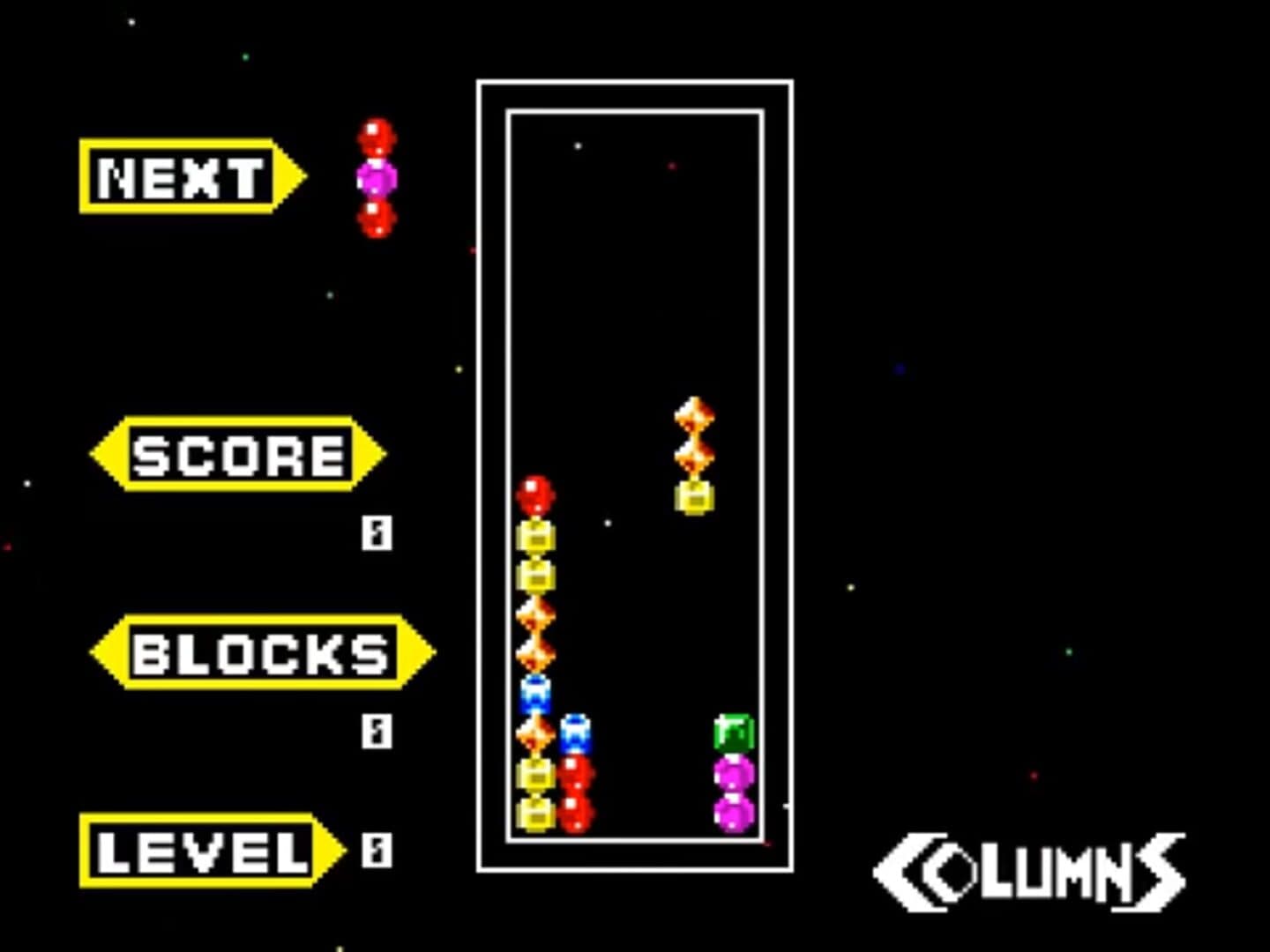 Columns is a match-three puzzle video game created by Jay Geertsen in 1989. Early versions of the game were ported across early computer platforms and Atari ST. In 1990, Jay Geertsen sold the rights to Sega, who ported the game to several Sega consoles.