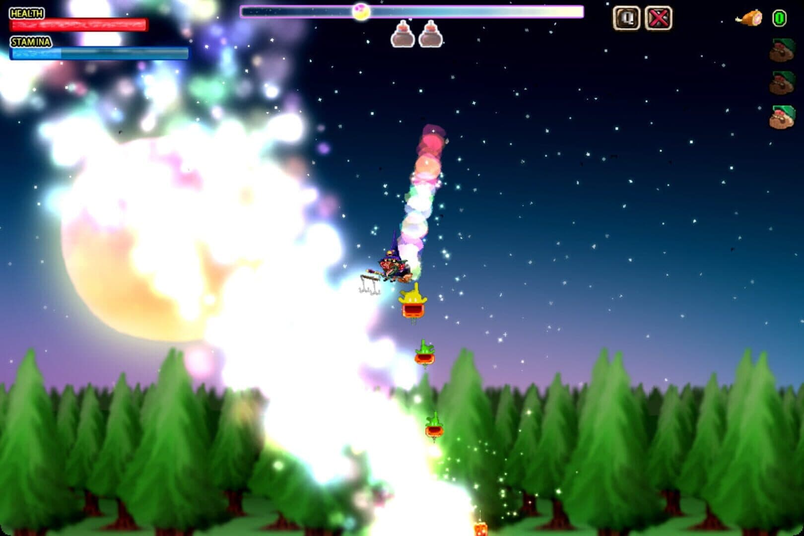 In Cooking Witch you are a witch flying to a party in the woods, abducting the children and cooking and eating them.