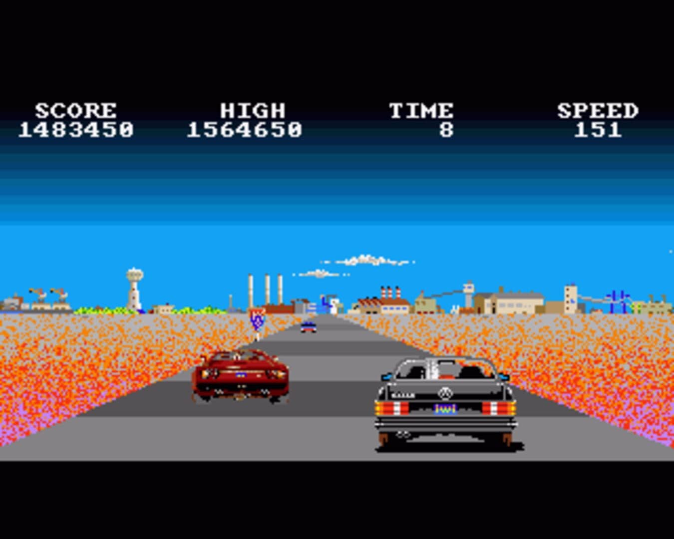 This race is over three tracks throughout the United States: Arizona, Space Shuttle, and Florida. If you are able to complete the race before the time runs out, you will get a faster car. You start with a Mercedes 560 SEC, then a Porsche 911 Turbo. Better than average drivers will receive a Lamborghini Countach, and only the world's best drivers may drive a Ferrari GTO.