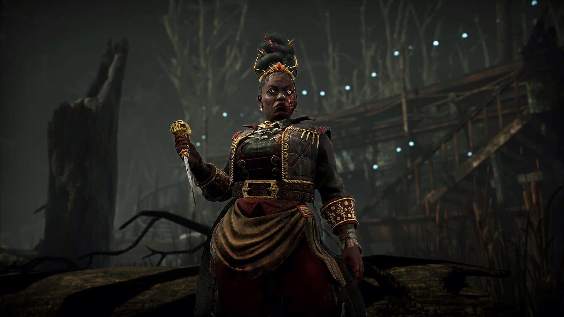 THE HOUNDMASTER Cast adrift by a horrific tragedy, Portia Maye arose from the blood with renewed purpose: to inflict unspeakable pain on those who tore her family apart. With her loyal dog forever at her side, her insatiable lust for violence runs deeper than the darkest ocean trench. The Houndmaster’s Power: Scent of Blood The Houndmaster and her dog operate as one, with her every command obeyed without delay. Use your dog to chase, track, and grip Survivors, allowing you to efficiently apply pressure.