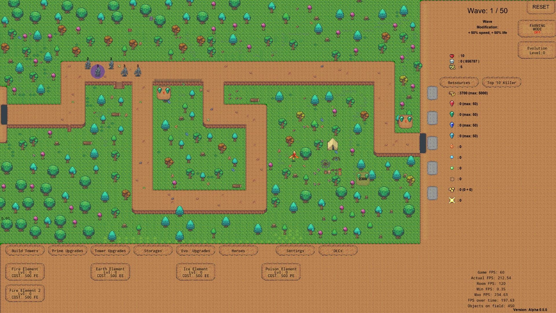 Defense Clicker is an clicker game with an tower defense theme and a few twists which make it very unique. You have to build an defense line with towers and upgrade them to stay alive as long as possible. when you die the map resets but you get a few special points depending on how long you survived. With this points you can upgrade the power of your towers and many other things to stay longer alive.
