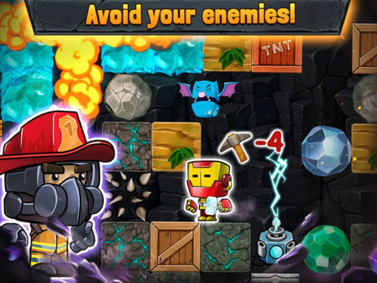 The mines are not going to dig themselves! Grab a pickaxe, fresh pair of shoes and start diggen'! Dig as deep as you can to collect shiny gems and treasures! But dig carefully, as the FALLING BOULDERS can smash and crush your miner. Challenge your friends and see who can dig the deepest! As you dig, beware of the horrific, though cute, underground MONSTERS! Use your traps and weapons to give yourself a few more precious seconds. Rush through the endless underground mines and become the best treasure hunter!