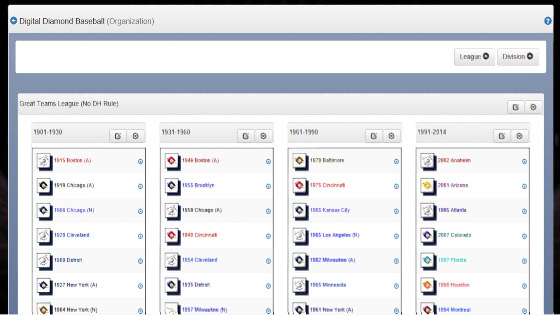 Digital Diamond Baseball is a computerized baseball simulator that allows gamers to play individual games, series, or entire seasons, using players from any baseball season in history. Never pay for a new season again! With one low price, gamers create their own player libraries, or download them from the large collection of free player libraries.