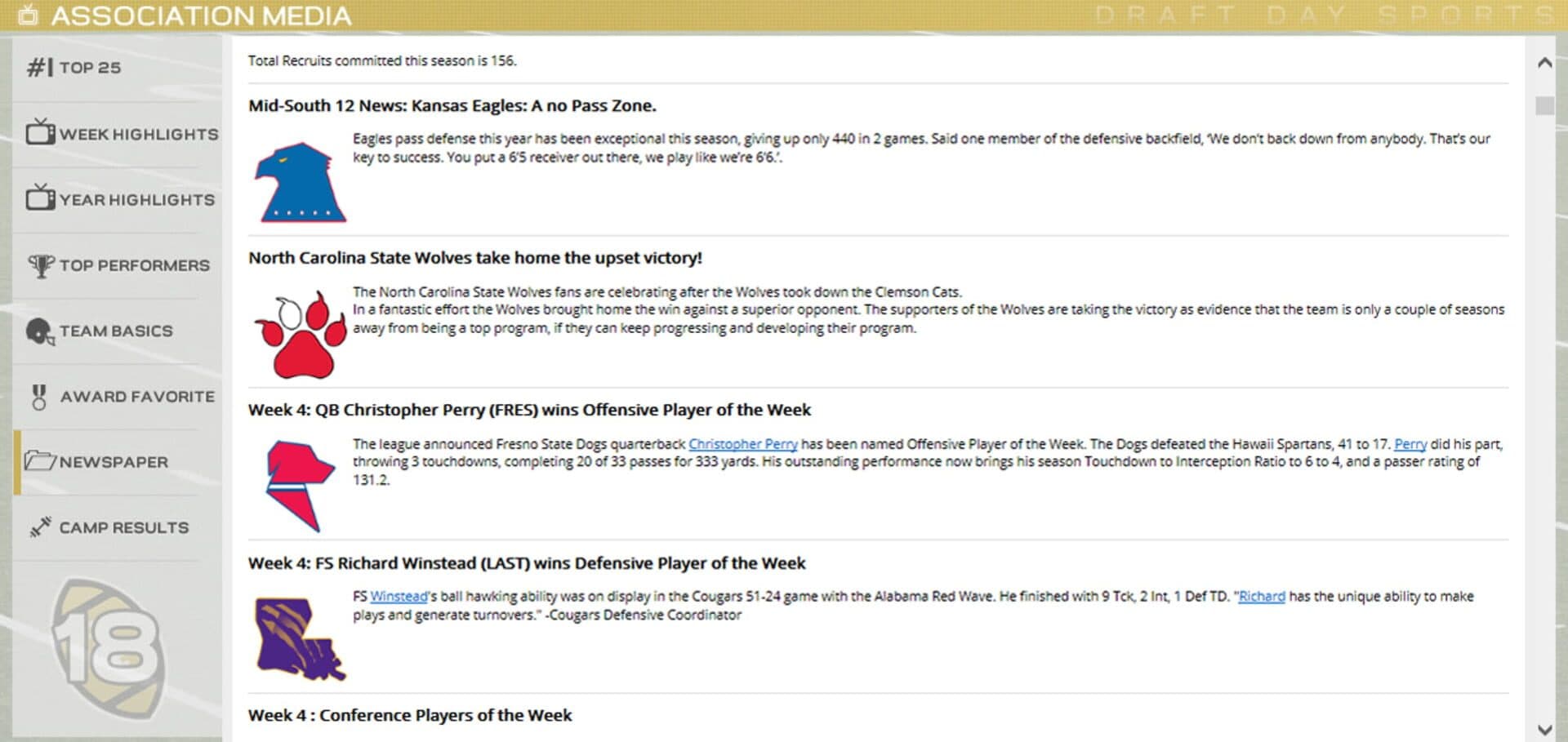Draft Day Sports: College Football 2018