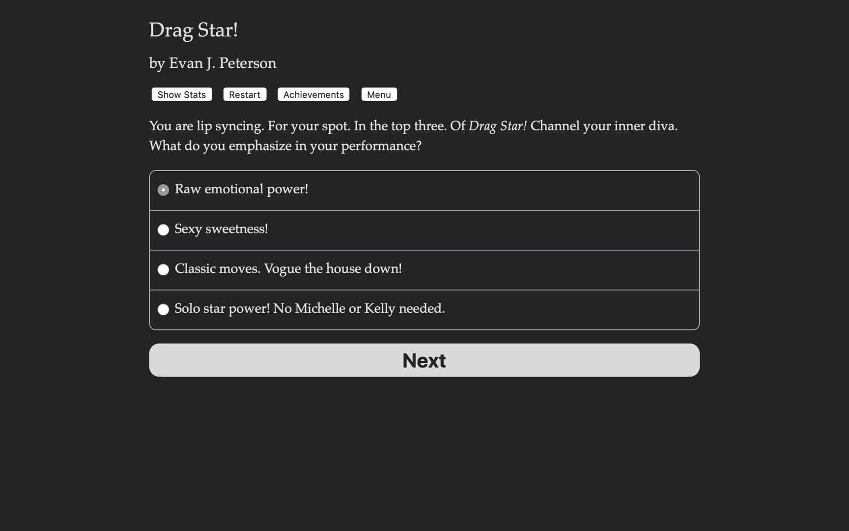 Get ready, honey! You're a contestant on Drag Star!, the reality TV drag competition. You better throw shade, serve looks, and slay each episode to become the next drag icon!