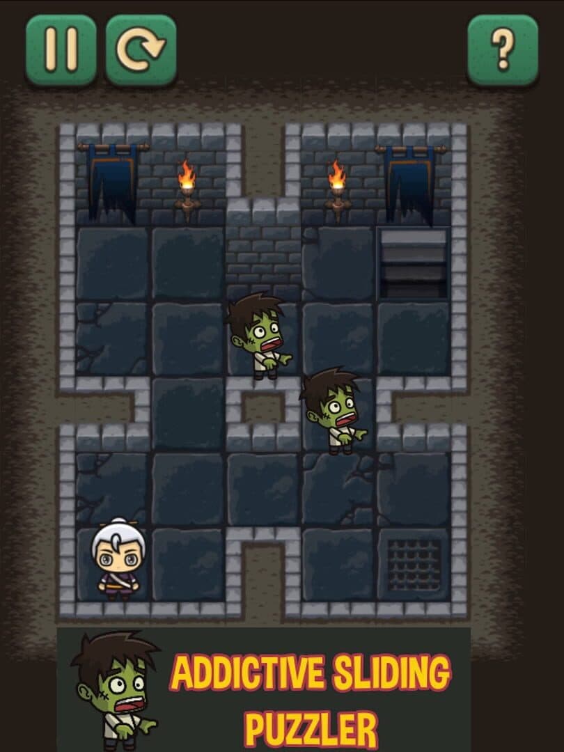 Swipe your character to solve challenging puzzles and escape spooky dungeons full of undead creatures! Cute and spooky cartoon monster atmosphere makes it even more fun, especially during Halloween! If you like Sokoban type games or sliding puzzler maze games, you are definitely going to love Dungeons & Zombies! Act quickly, they're coming to get you ... Barbara! Dungeons & Zombies is based on Mark Richardson's game called Gobble Rush. Your aim is to swipe your hero to get to the exit (marked as a stairs) at the end of each stage without being gobbled by the walking deads that will charge at you like bulls if you enter their line of sight. What's neat about Dungeons & Zombies is how satisfying its puzzle solving really is, encouraging you to carefully study each level layout to pick your way through. Features: - Addictive and challenging game-play for all ages. - Sliding puzzler: simple one finger control. - More than 120 levels (60 are free) - Increasing difficulty to keep you both challenged and entertained. - No moves limit! No time limit! Play at your own pace. - Mind-bending experience for puzzle lovers (sokoban, maze). - Can be played offline