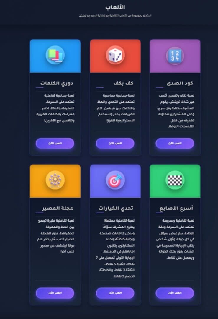 E4KM Games An interactive gaming platform offering a variety of chat-based games fully in Arabic. It focuses on quick thinking, word challenges, and luck-based mechanics like wheel spins, designed to make group play exciting and engaging.