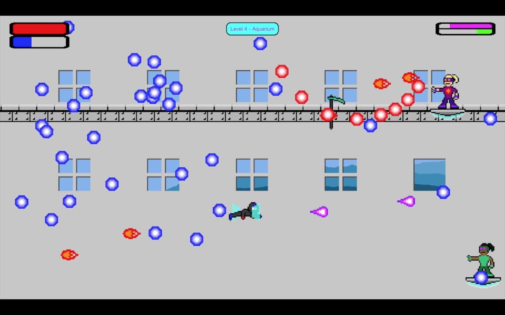Erika America is an bullet hell video game. Fly and shoot your way through 5 levels, each culminating in a boss battle with a supervillain.