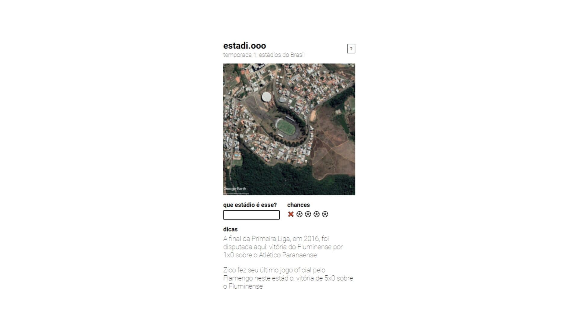 A daily puzzle game in which players must guess the name of a stadium within five attempts from a satellite image, with each failed guess giving them one extra tip.