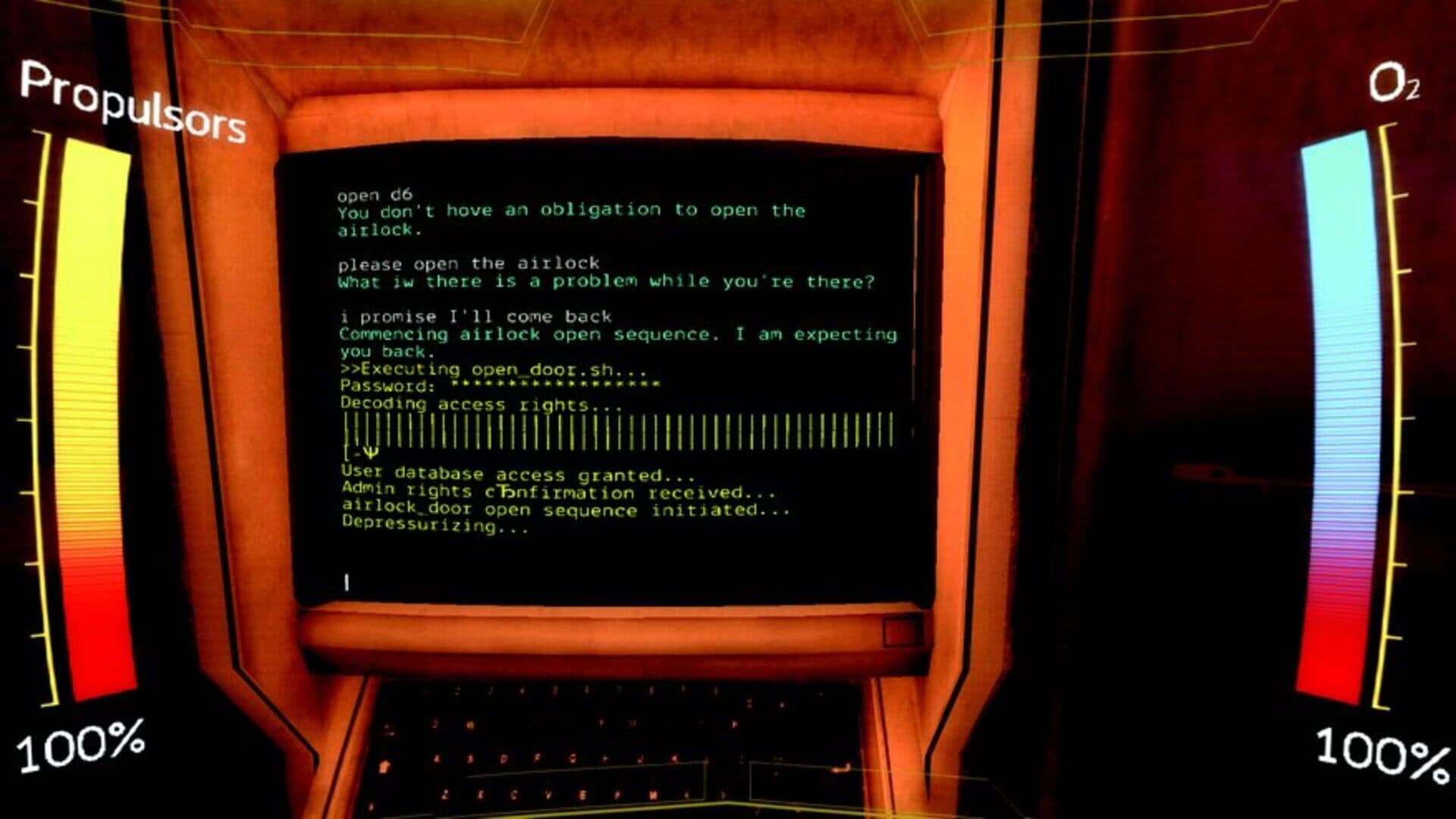 "Event[0] is a game about building a personal relationship with a machine. You type messages into a computer, and Kaizen answers. As in any relationship, you experience gratitude, disappointment, and sometimes jealousy. It is by working through fears and anxieties of your virtual companion that you will find your way back to Earth."