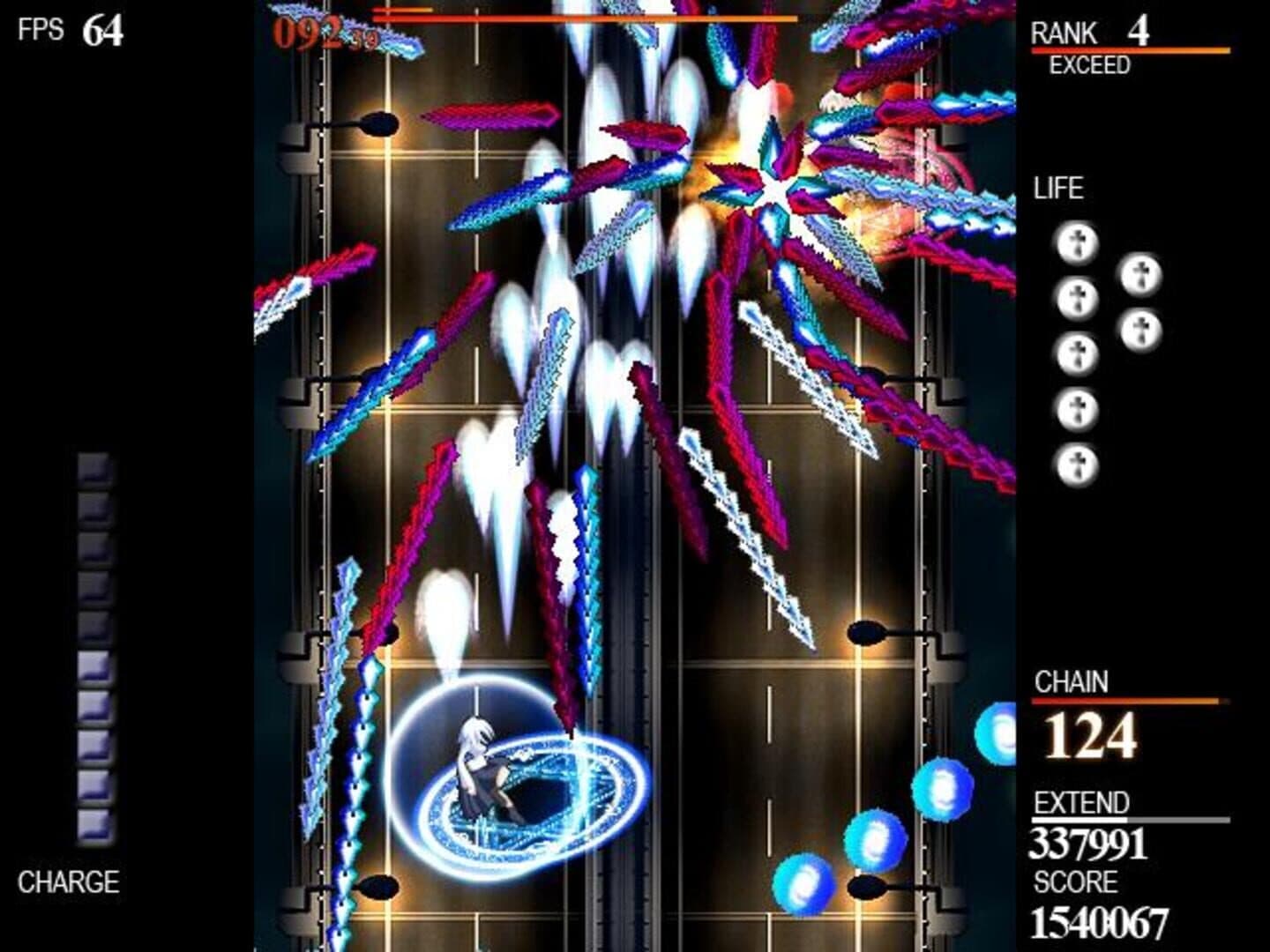 The human powers-that-be called for the purification of mankind and the eradication of vampires and ‘deviants bloodlines’ – those born of a mix of human and vampire. And so began massive purges of the deviants that were reminiscent of the “witch hunts” of centuries earlier. Leading the genocide was the exorcist corps the “Gun Bullet Children”. As the overwhelmingly large human armies began to obliterate every vampire and deviant community across the world, the opposing deviant armies sought to gather allies and rally back. Lia Fyle is a half-human, half-vampire girl fighting on the side of the deviants as they embark upon a turnaround strategy, the “Siege on the Holy Land’. Their plan: to lay siege upon the humans’ “Holy Land” and to destroy the Holy Lady Anhel who was the source of the human military power. This is a battle in which defeat is an option for neither army. Featuring an addictive dual-polarity gameplay system, this amazing vertical shmup is sure to please any shooter fan. The polarity and color of your character can be changed to absorb enemy bullets of the same polarity while charging the special weapon in the process and doing double damage to enemies of the opposite polarity. Every bullet absorbed charges your special weapon for total destruction. With awesome music, beautiful art, and challenging stages, this is the game that put the eXceed series on the map and has everything you would want from a shmup.