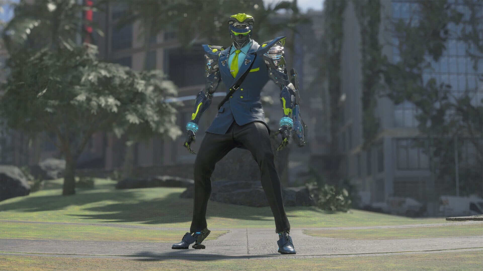This set includes five cosmetic items for the Assault-type exosuit Zephyr -- known to leverage its mobility and stylishly slay enemies. This guard instantly detects all types of danger! Equip these cosmetic items and keep your teammates safe!