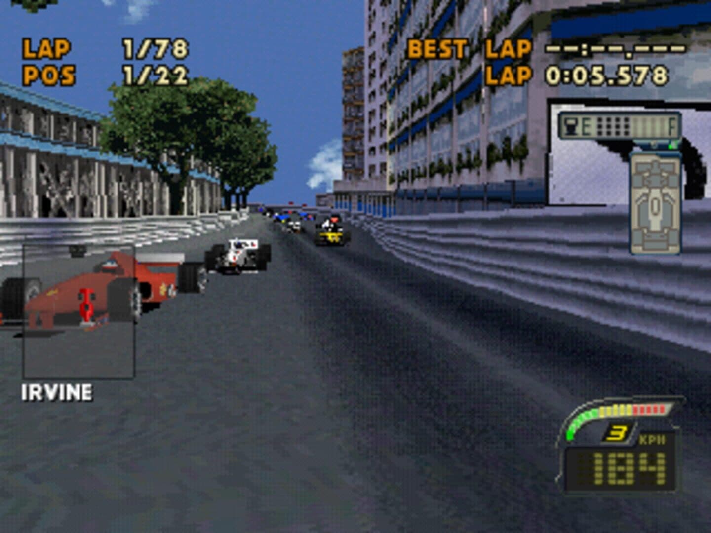 You'll line up against the fiercest opponents of all time in this ultimate F-1 simulation. Featuring real circuits from the 1999 Formula One season, F-1 RACING CHAMPIONSHIP boasts the inclusion of the brand new Sepang track in Malaysia. All of the drivers from the ’99 season are included, and each uses the strategies and techniques that he’d use in a real race. Two different modes allow you to try your hand at both ultra-realistic driving simulation, and arcade-style racing with brutal crashes and fast-paced, forgiving action. Each car has eight technical settings that can be tweaked to your taste, or you can just trust the judgment of the mechanic. Try out Solo mode; Time Attack (a race against your own best time); World Championship; Split-Screen Duel; and the helpful Driving School mode. Awesome graphics and true-to-life F-1 physics make this the most harrowing racing game to date, and impressive computer AI will have you working at this beast for quite awhile.