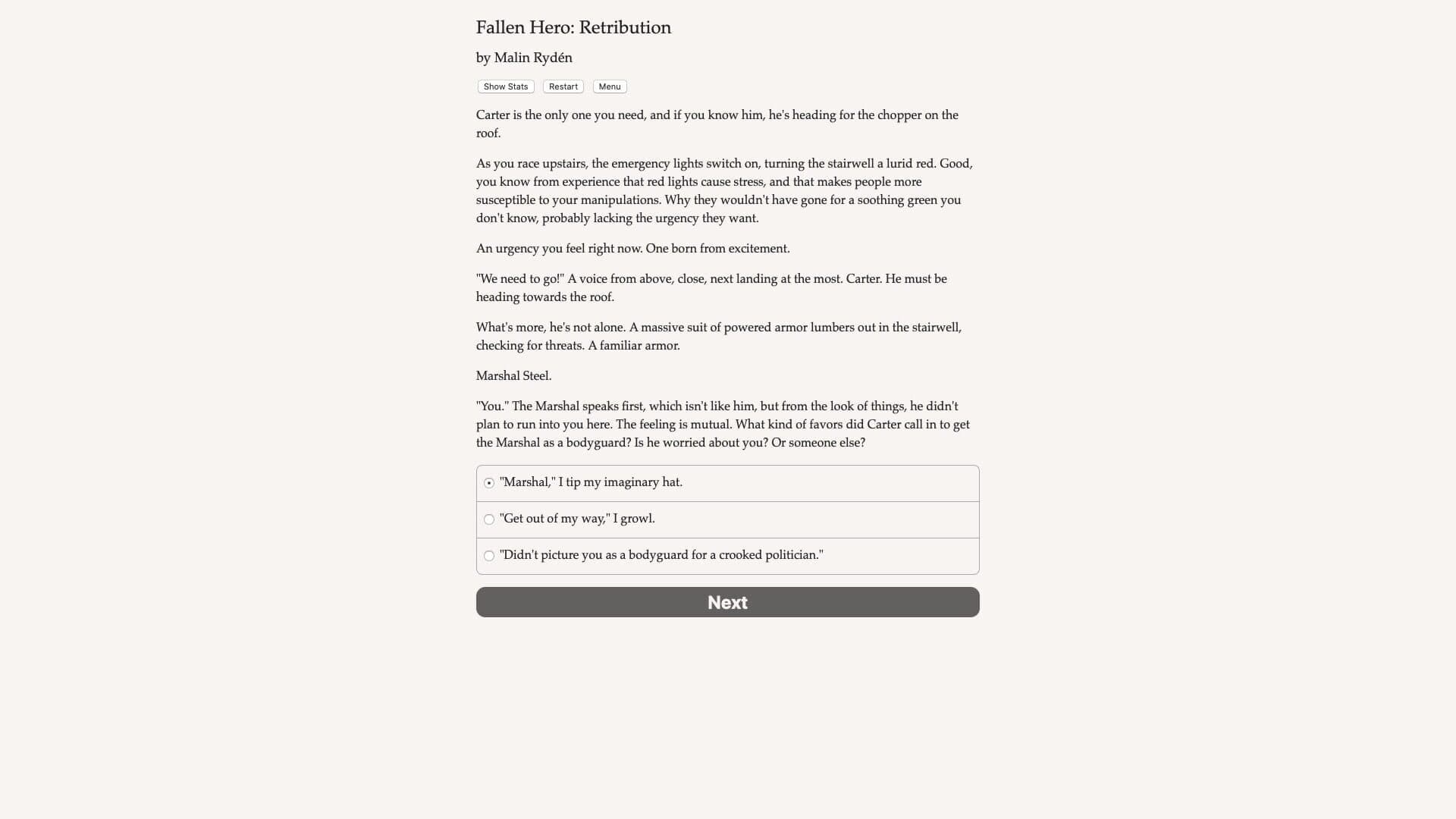So you're a villain now? Let's see if you survive the experience. Continuing directly from the events in Fallen Hero: Rebirth, you need to stay one step ahead of your past as you build your future, one crime at a time. Will you keep up the lies, or risk everything by putting your trust in people? Making enemies is always dangerous, becoming one doubly so. Where on that scale making friends with them is, you'd rather not think about. Perhaps agreeing to visit a psychiatrist is not the worst choice you've made.
