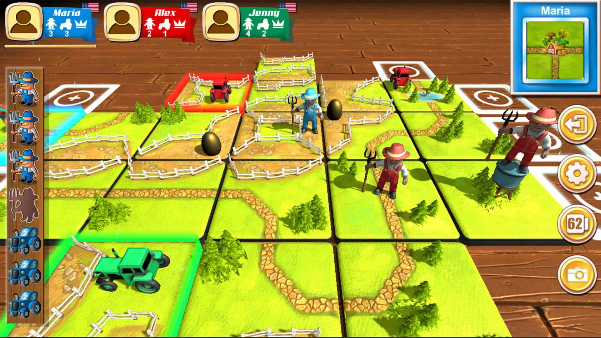 Farm Builder is strategy puzzle board game in which you have to construct farms, roads and surround windmills and water-towers in order to score points. The game is online multiplayer and in each room can play between 2 and 5 people together. The winner is the player who manages to score the most points. To make points you have to own a completed farm, road, windmill or water tower. This is done by placing farmers and tractors (pieces) which indicate that you own the property.