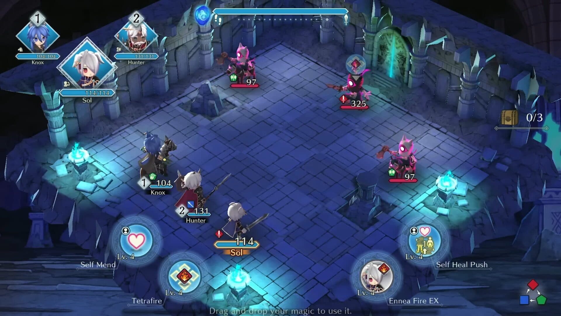The gameplay of Fire Emblem Shadows combines real-time strategy and social deduction. One of the three allies participating in each battle is secretly a treacherous disciple of shadow. Players choose to take on the role of either a disciple of light, aiming to find their way through the labyrinth, or a disciple of shadow. After the initial battle, players vote to determine who they believe is the treacherous disciple of shadow. The outcome of the vote affects whether the next battle is more favorable or more challenging. Whether the disciples of light can correctly discover the traitor—or the disciple of shadow can successfully deceive the others—holds the key to how the next battle unfolds.