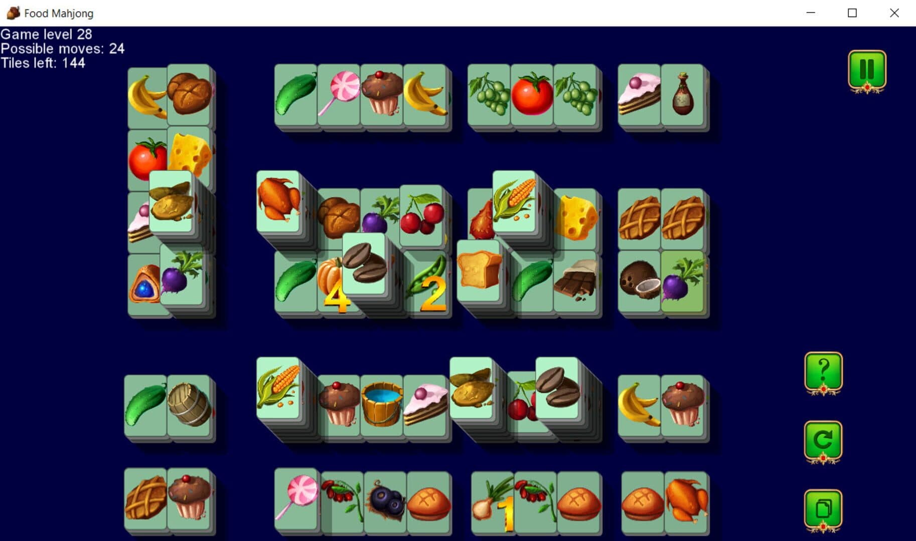 Food Mahjong is the perfect game for the casual player looking for fun and extensive gameplay. The goal of this game is to match open pairs of identical tiles and remove them from the board. The game is finished when all pairs of tiles have been removed from the board.