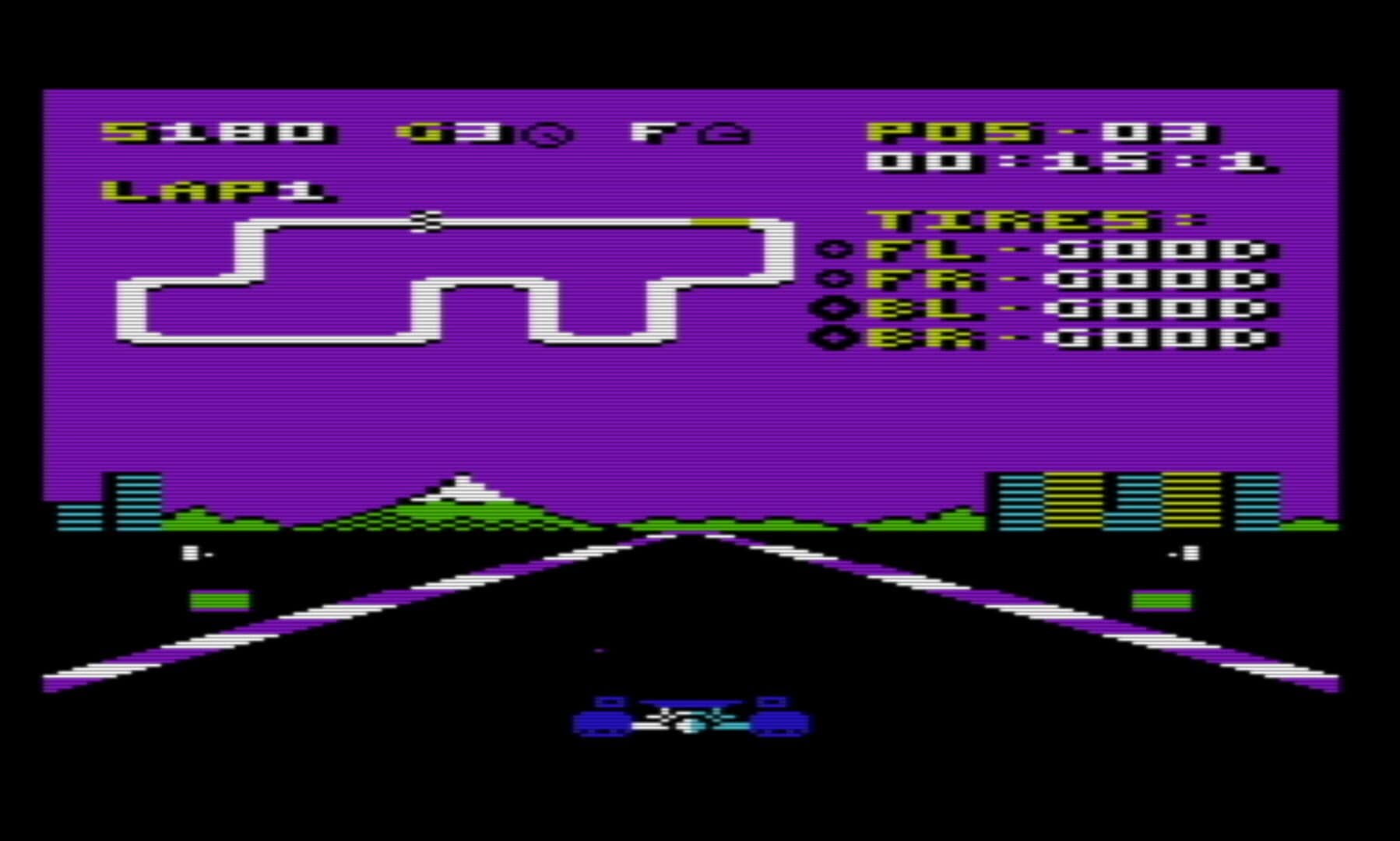 Formula V20 '85 is a racing computer game for the 24k expanded Commodore Vic-20. It has been crafted in the style of the classic Commodore 64 games Pitstop II and Pole position. Pick from seven different racing teams and four different circuits. Join a single race or compete in the world championship.