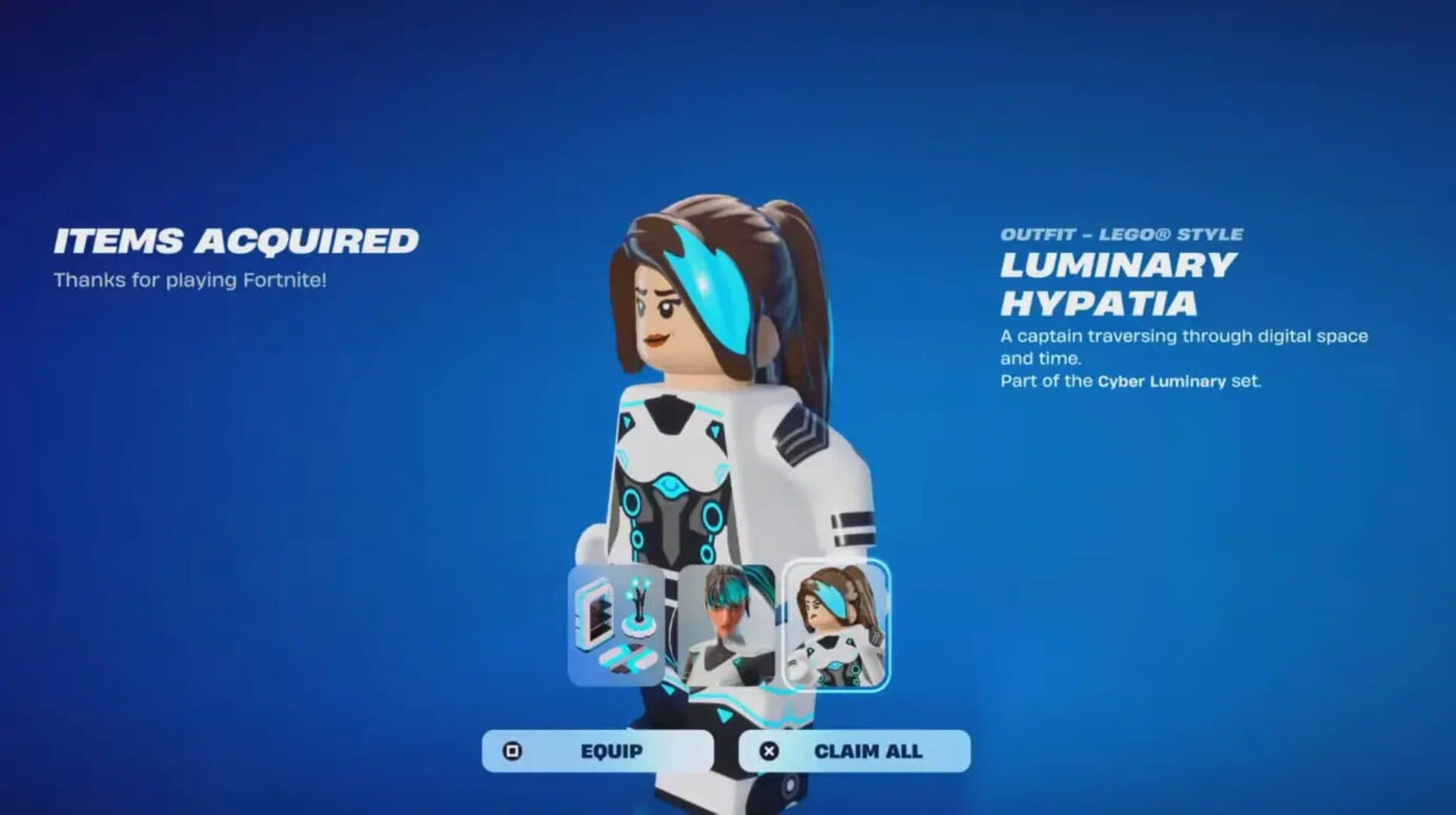 Deck out your own quarters with the Luminary Hypatia Starter Pack. Includes on Outfit (with LEGO style) and Decor Bundle (with 12 Decor Items for use in LEGO Fortnite).