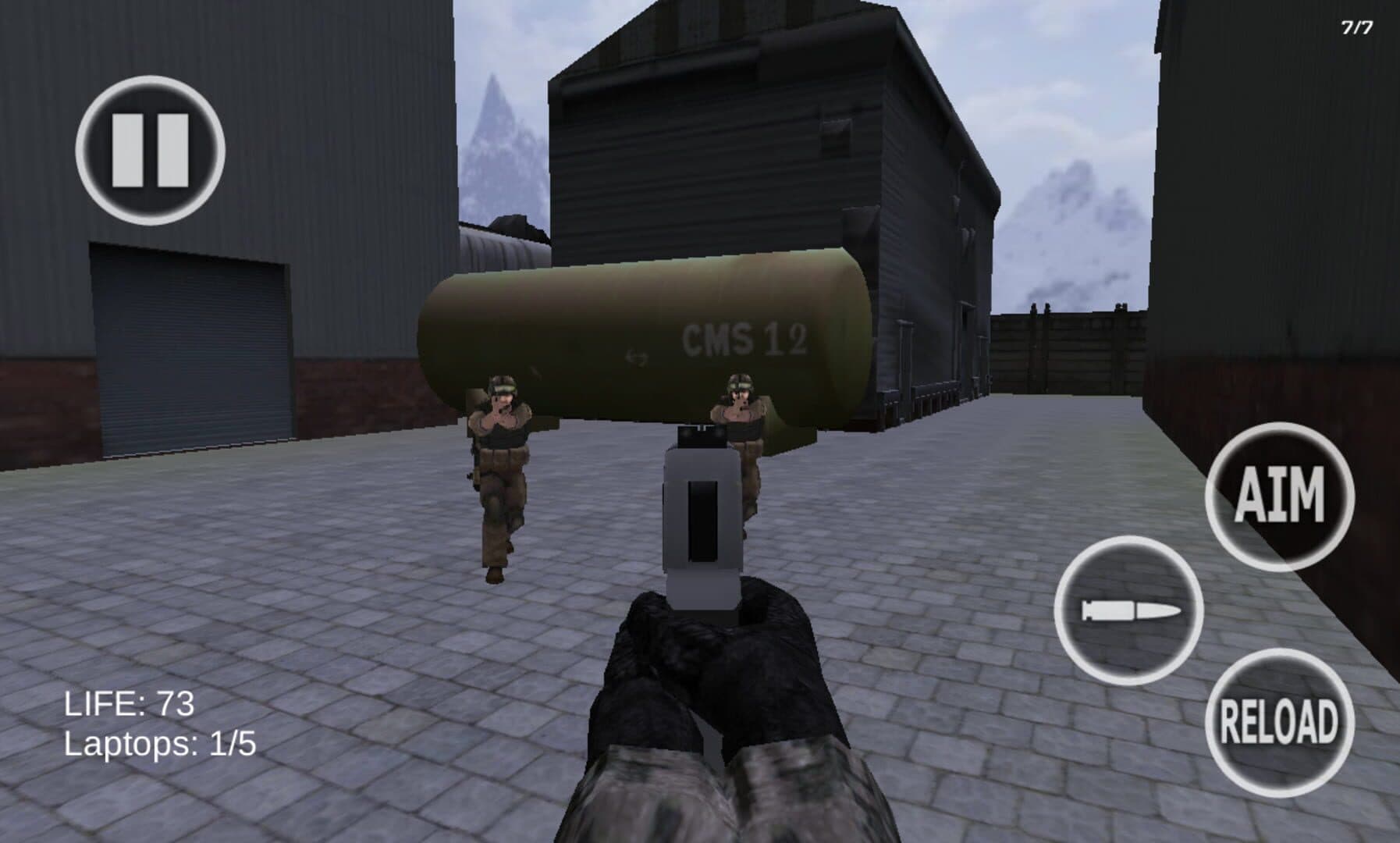 This great first person shooter can be fun and challenging at the same time. Get ready to fight and complete all objectives to unblock new guns. You can have 4 guns in total and have to survive more than 50 enemies while trying to get all laptops scattered around the map. At the end, you got to go to the Main Server, access it and try to escape successfully. This is a great war simulator where you can walk around in a 3D world and shoot with a great amount of weapons.