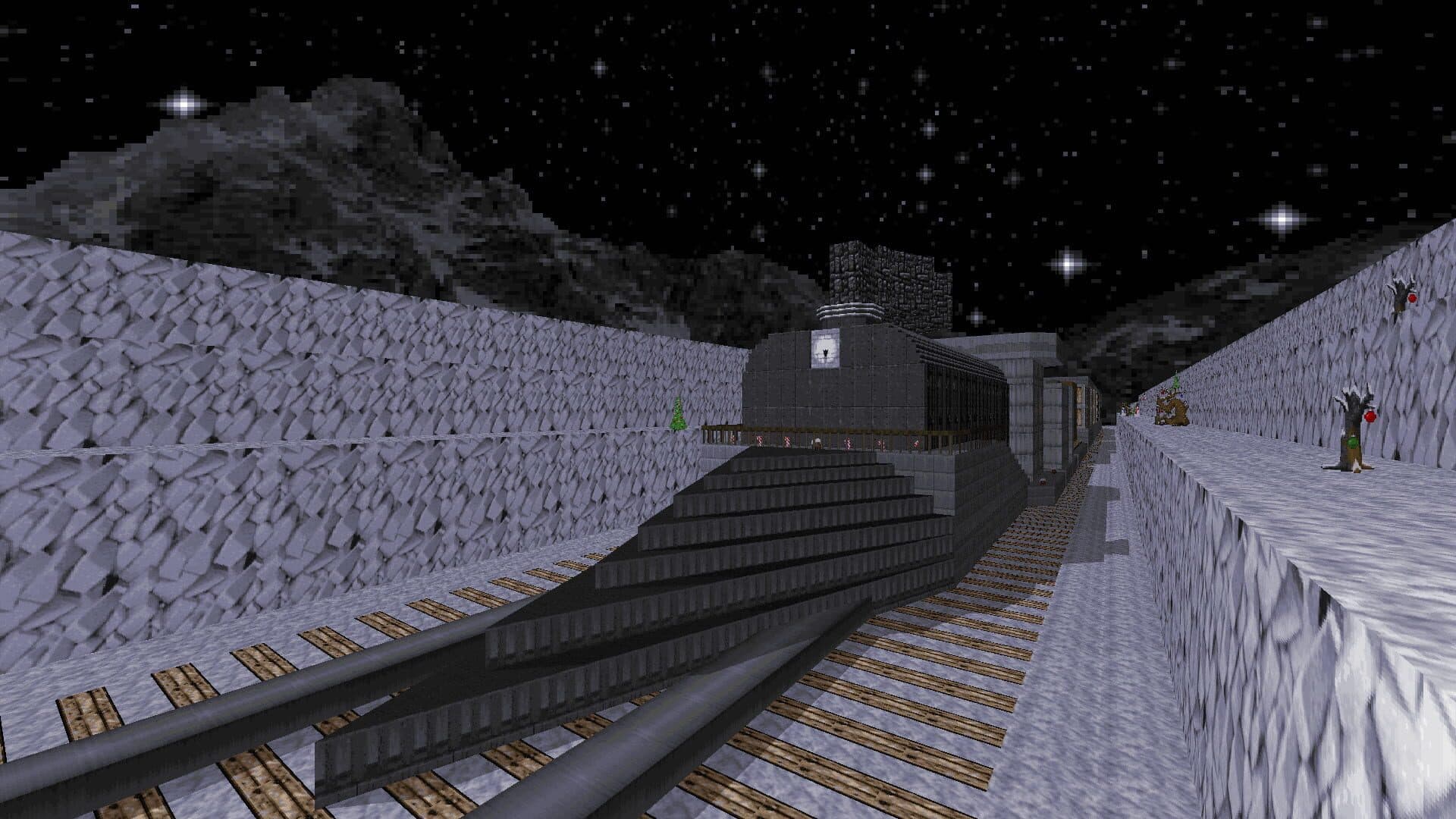A train level inspired by Build Engine vehicle levels (see Blood E1M3) and The Polar Express (movie).
