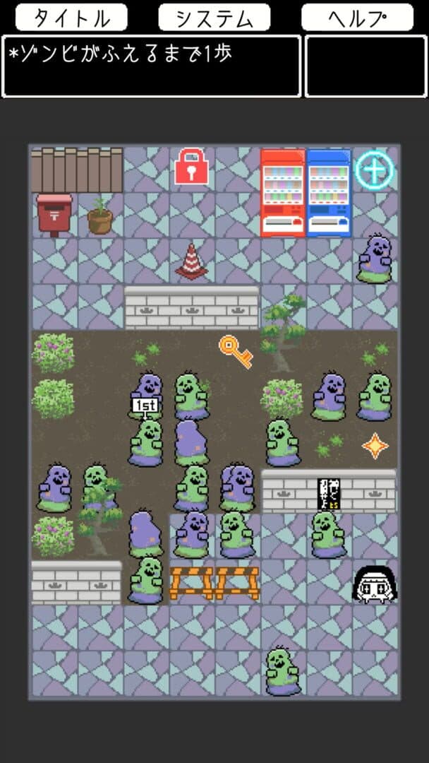A turn-based puzzle where you avoid getting close to the increasing zombies. The town is destroyed, but with a (kinda) happy ending!