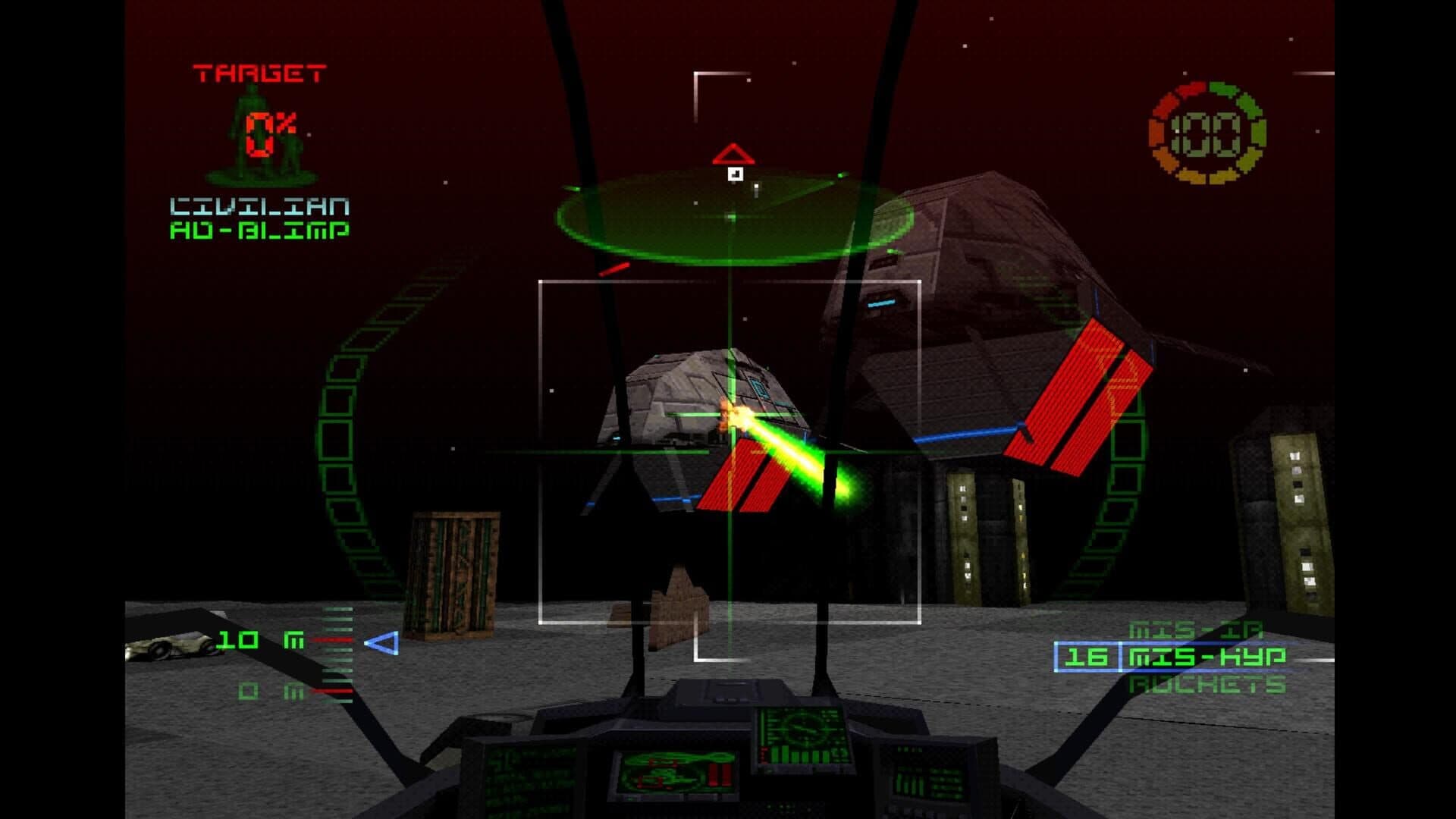 A 2024 port of G-Police, enhanced with up-rendering, rewind, quick save, and custom video filters. G-Police is a 1997 combat flight simulator set in a hypothetical future where corporations lead space colonies. The player is Jeff Slater, a futuristic helicopter pilot who joins the G-Police to investigate his sister's death.