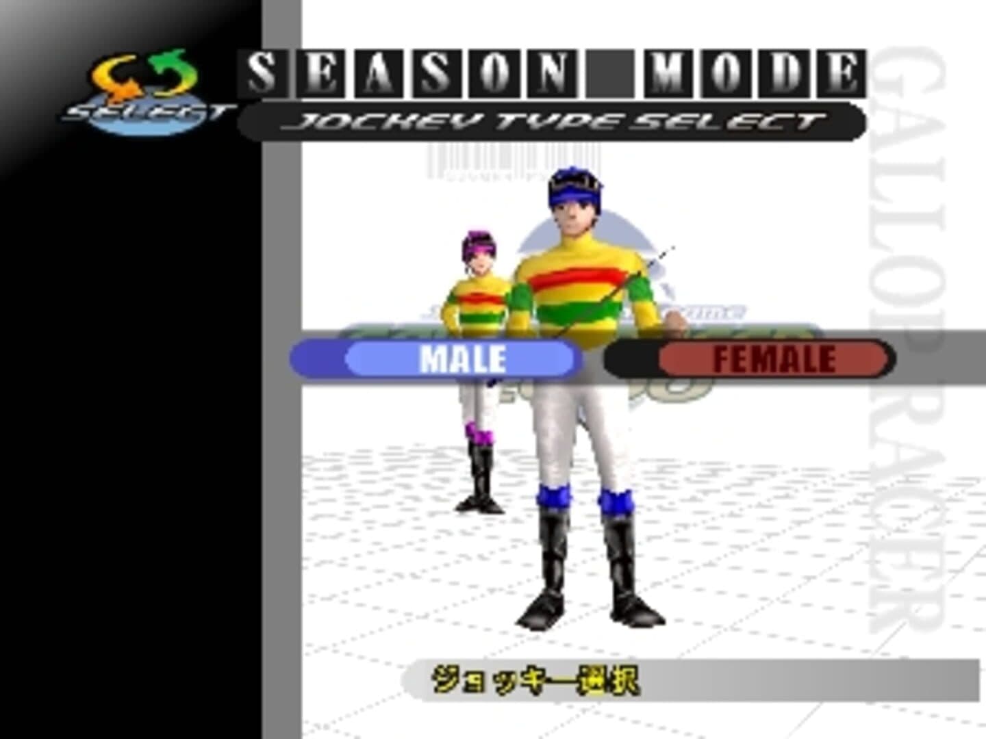 A stable of 1500 horse make up the mighty steed database in Gallop Racer 2000. The gameplay's simple enough where you get on the saddle and race your equine to the winning post while thundering competitors strive for the same goals. This version allow players to create their own "dream horse". Other new feature will include new horses being allowed to inherit the abilities of their parents. This game is the last one in the Gallop Racer series for PSone. These are the game modes: - Season mode - Practice mode - Vs Mode - Dream Cup mode
