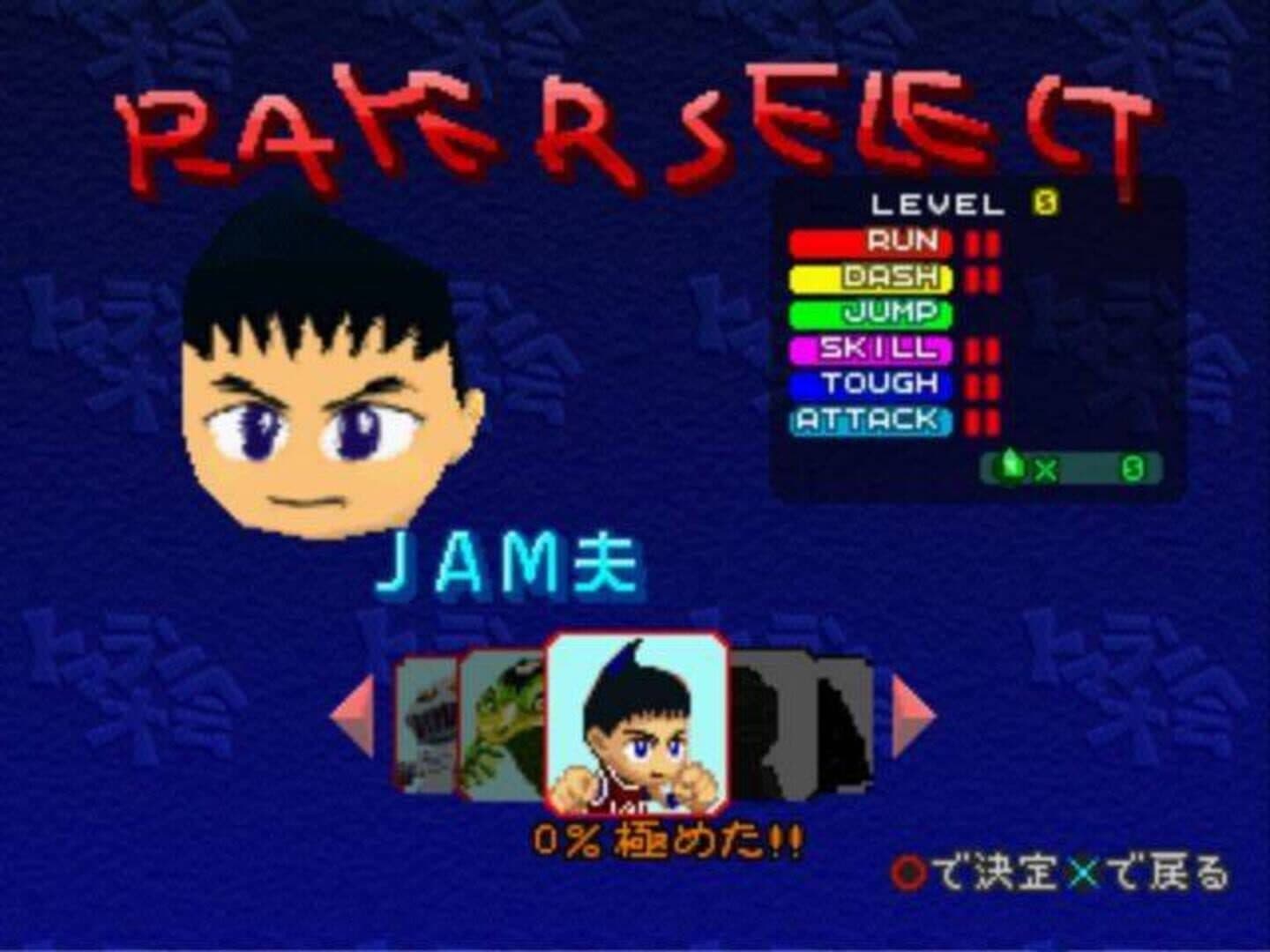 Gekisou TomaRunner is an on-foot racing game with various crazy/fantasy/fable/mythological characters where the aim is to navigate the various split path tracks to victory. The game puts heavy emphasis on using the terrain to gain the upper hand over the opponent, and on top of that there are several bonus items to pick up which either can aid the player or be used as weapons against the opponents. The characters all run at a set speed, but using the left and right arm as well as well timed jumps on poles, springboards and hurdles will give the player a speed boost. If enough momentum is gained, the character leans forward and starts dashing at a much faster speed. Some areas will even allow the player to be airborne for a certain amount of time if the right path is chosen and if enough speed is gained. Hitting obstacles, getting punched by opponents or having any of the "weapon" items used against the player will slow their speed down significantly, sometimes even resulting in the character falling over in a stunned state. There are several modes in the game to choose from, including a single player tournament and a two players versus mode.