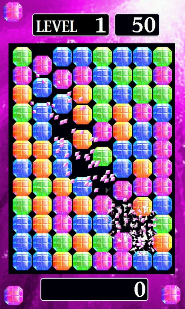 In this fast-paced puzzle game, line up gemstones in horizontal rows for points and added time; but it's not that simple! Each level demands a different color of gemstone! Drag your finger across unwanted gems and they will shatter, leaving the good ones to fall into place. Stack them for big combos and big points! Watch for special items as well; touching a "B" symbol will destroy all gems of the same color that you touched. Touching a "C" symbol will convert gems of the color you touched into the color for that level!