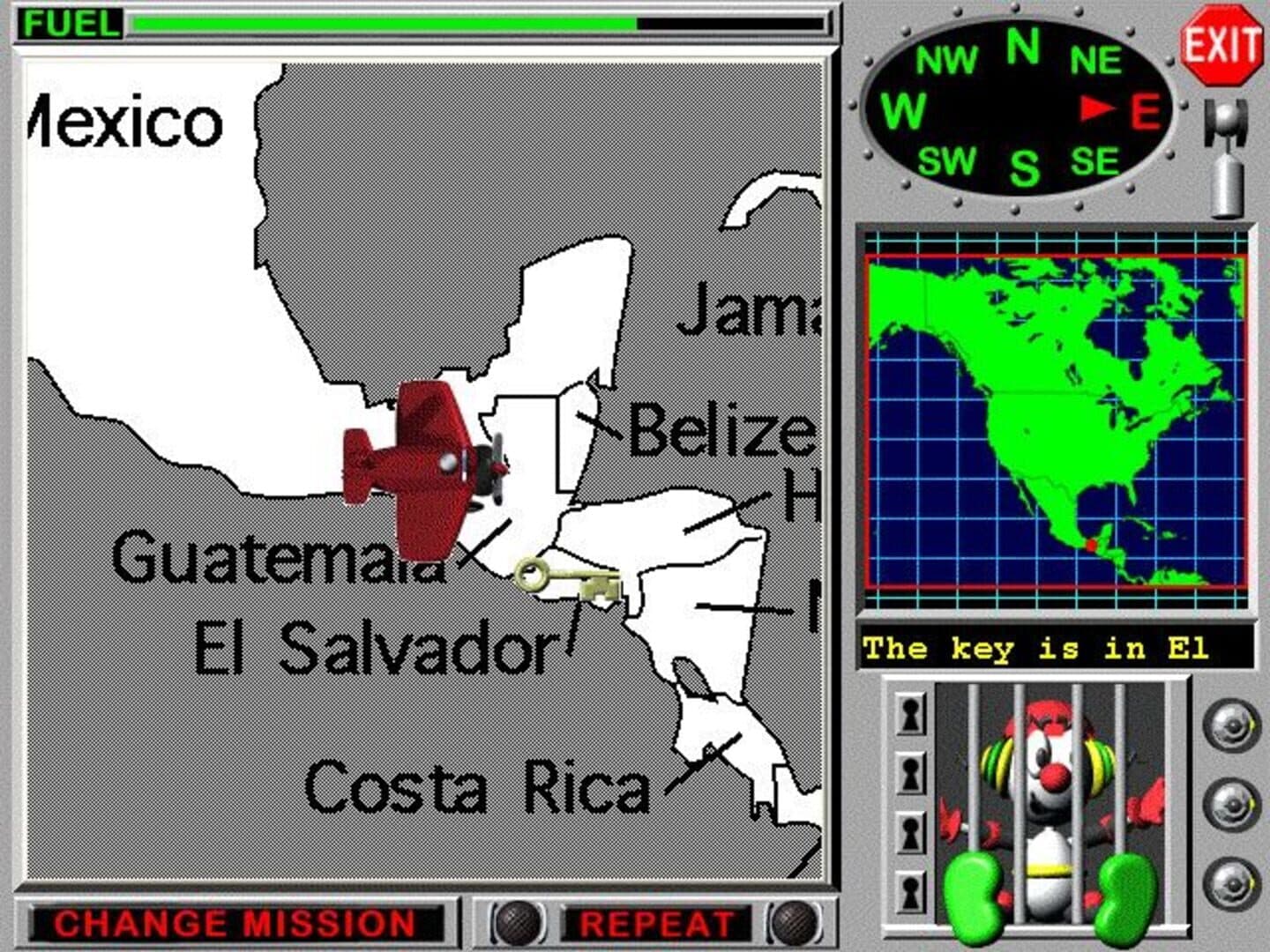 You are a member of the Blit Rescue and Tracking Squad (BRATS). Your unit's mission is to rescue Blit whenever he gets captured, which is basically his job. Blit skateboards, crashes, and ends up in a cage. In order to free Blit, you must find a number of keys scattered across different countries in a region. To obtain the keys, the game tests your geographical knowledge. GeoRunner prompts you to select a region of the world (North & Central America, South America, Africa, etc.) and to configure a skill level. The skill level determines a number of settings:* The difficulty of the clues. Early levels simply tell the player to visit a certain country. Later levels challenge the player on capitals or even trivia related to the country.
